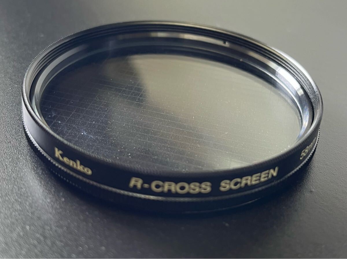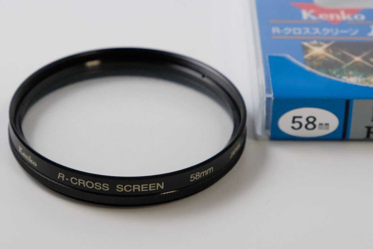 KenkoのR-CROSS SCREEN クロスフィルター、58mm径です。夜景やイルミネーションなどの点光源を、十字の光芒で美しく演出するフィルターです。
