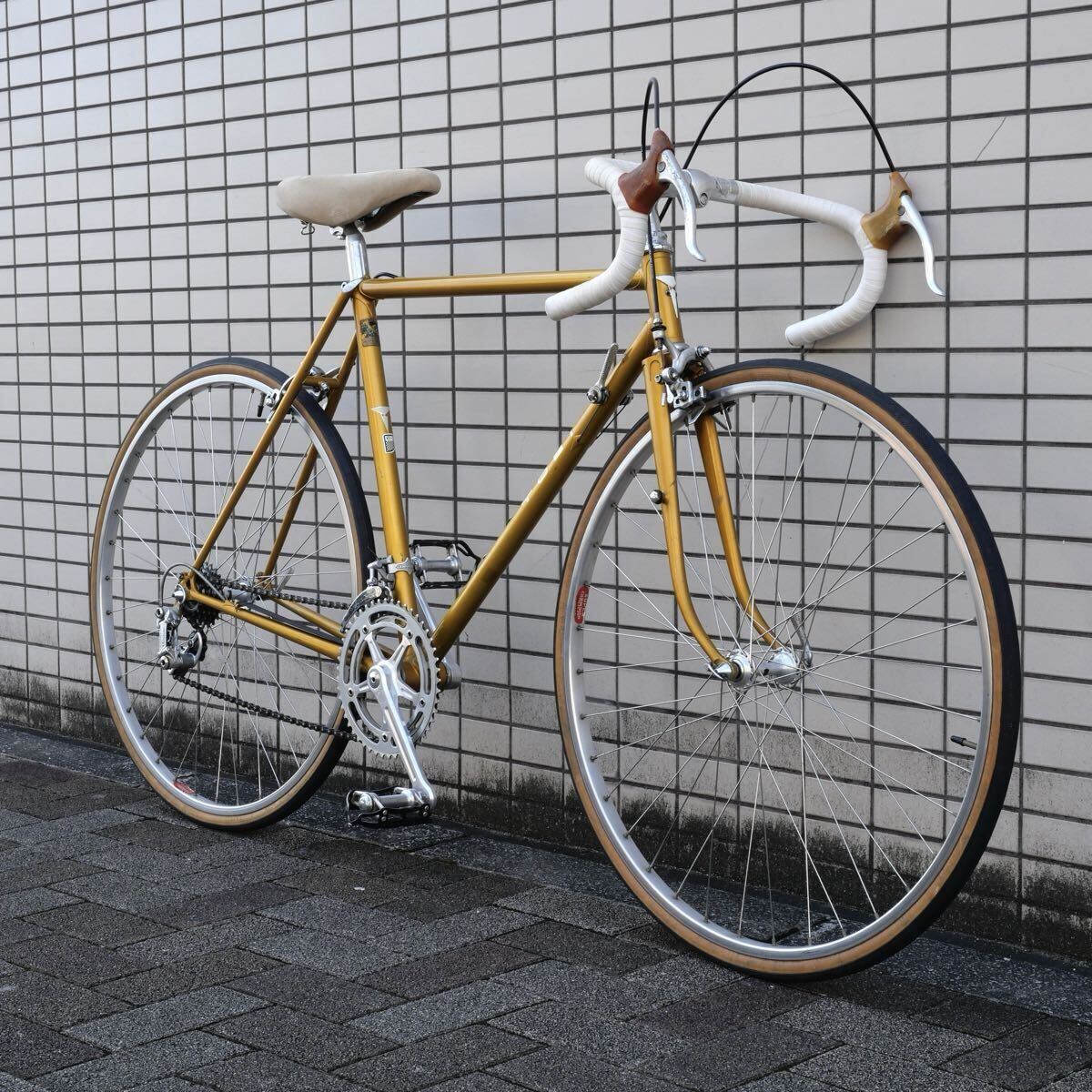 レイノルズ531にブレーキ・シフトケーブル内蔵、Fフォークライト用ダボ穴など特殊工作が施されています。ホイールサイズは650Aスーパーチャンピオンです。部品はBBやヘッドパーツも含めカンパニョーロで構成されています。