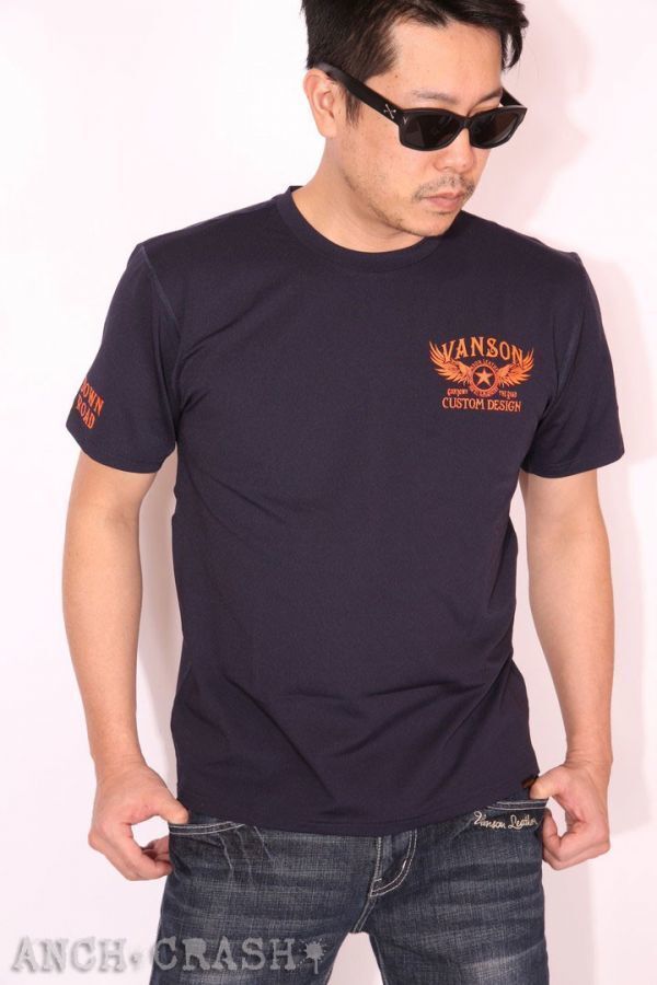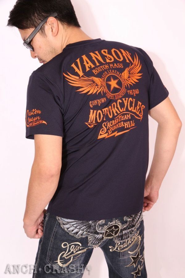 バンソン ドライ半袖Tシャツ ウィング ACV-901 ネイビー M 当店別注 VANSON 抗菌防臭 吸汗速乾 吸水速乾 UVカット アメカジ