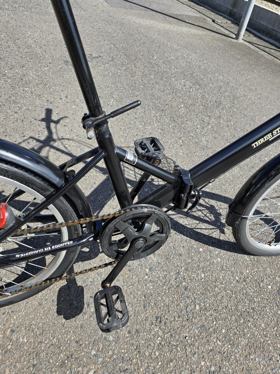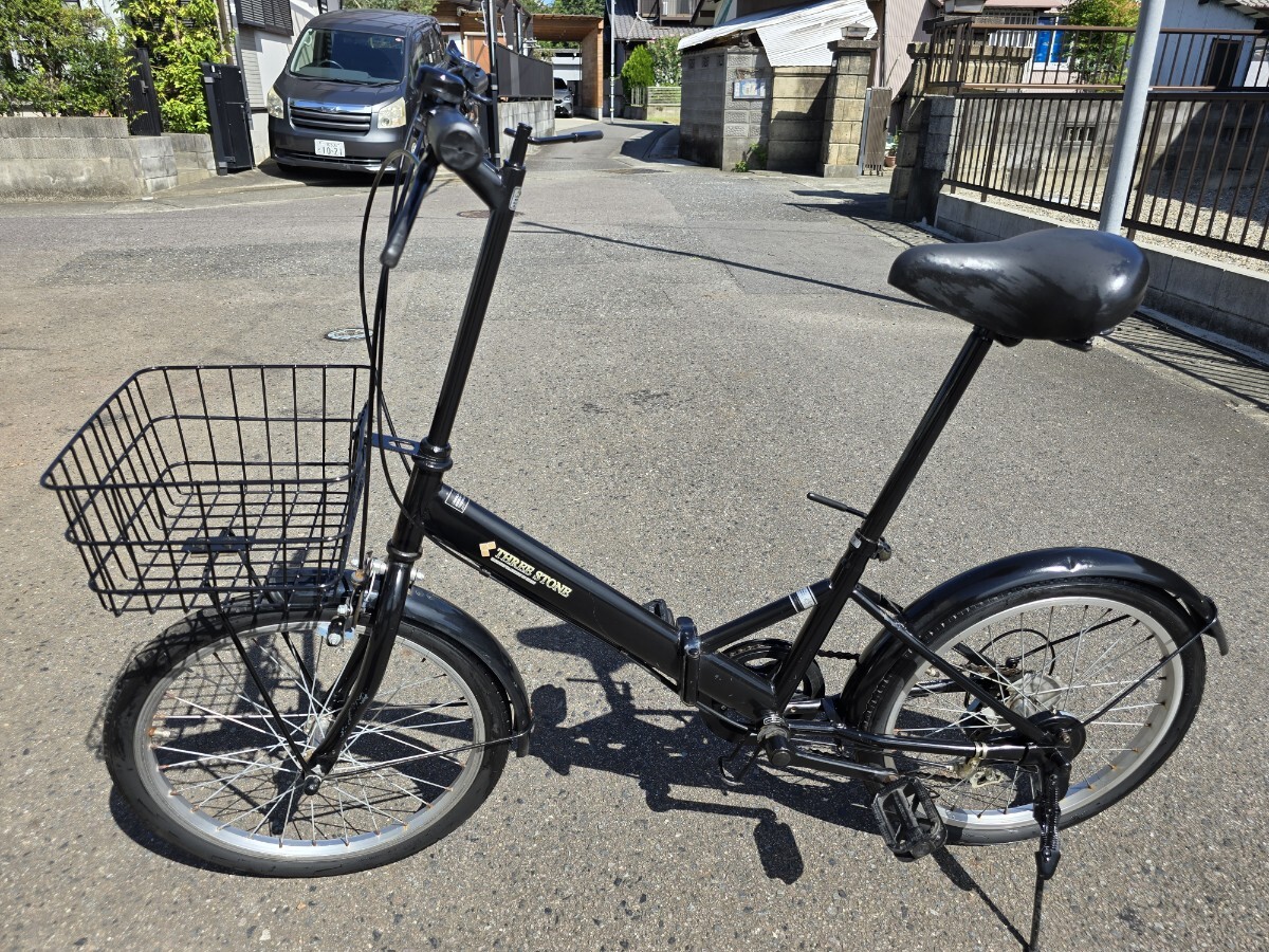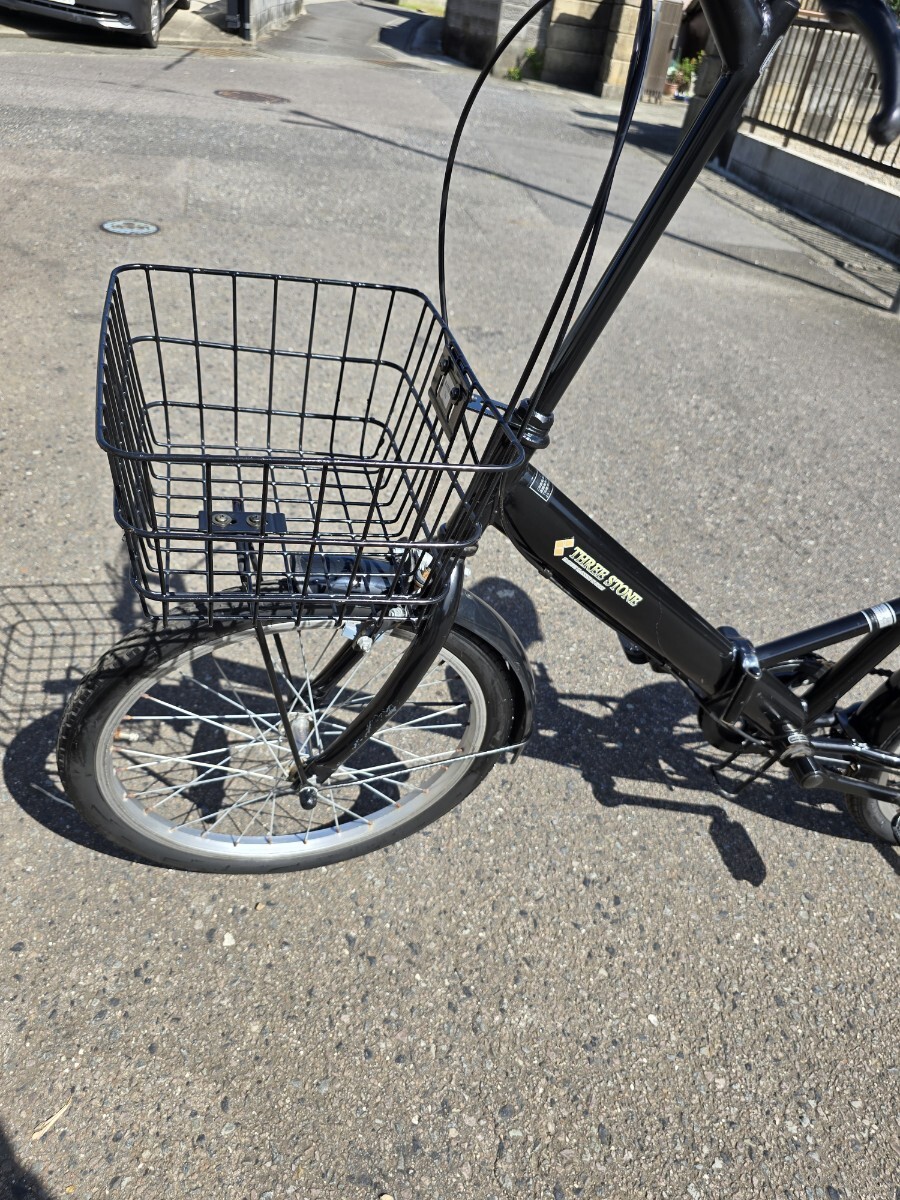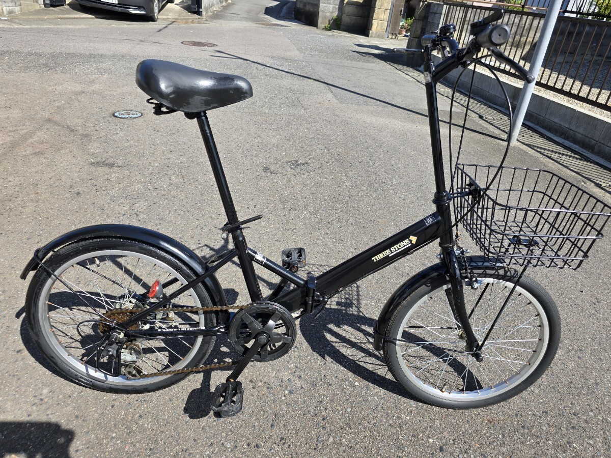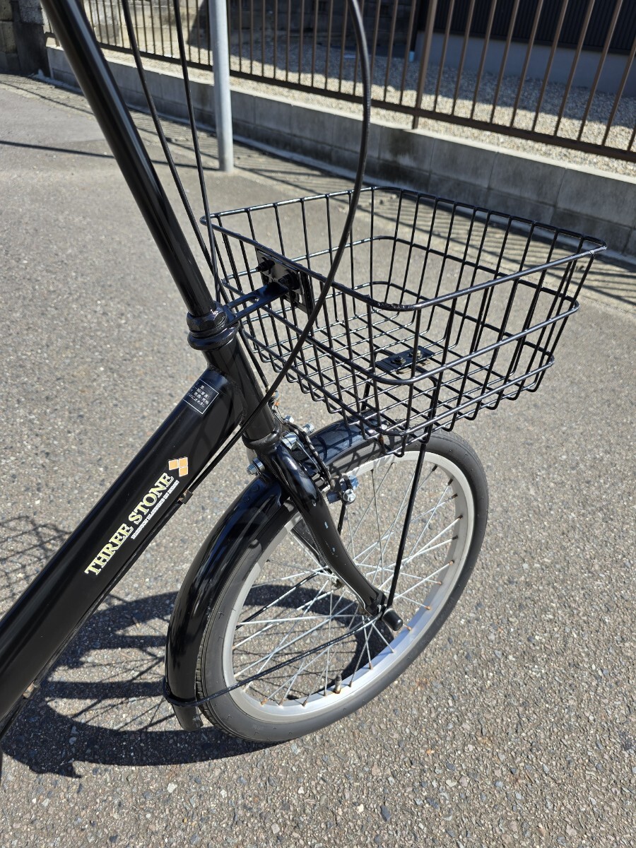 THREE STONE 折りたたみ自転車 黒 前カゴ付 20インチ 6ギア スリーストーン