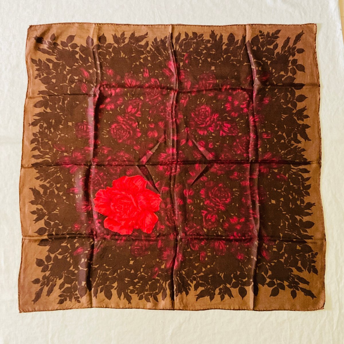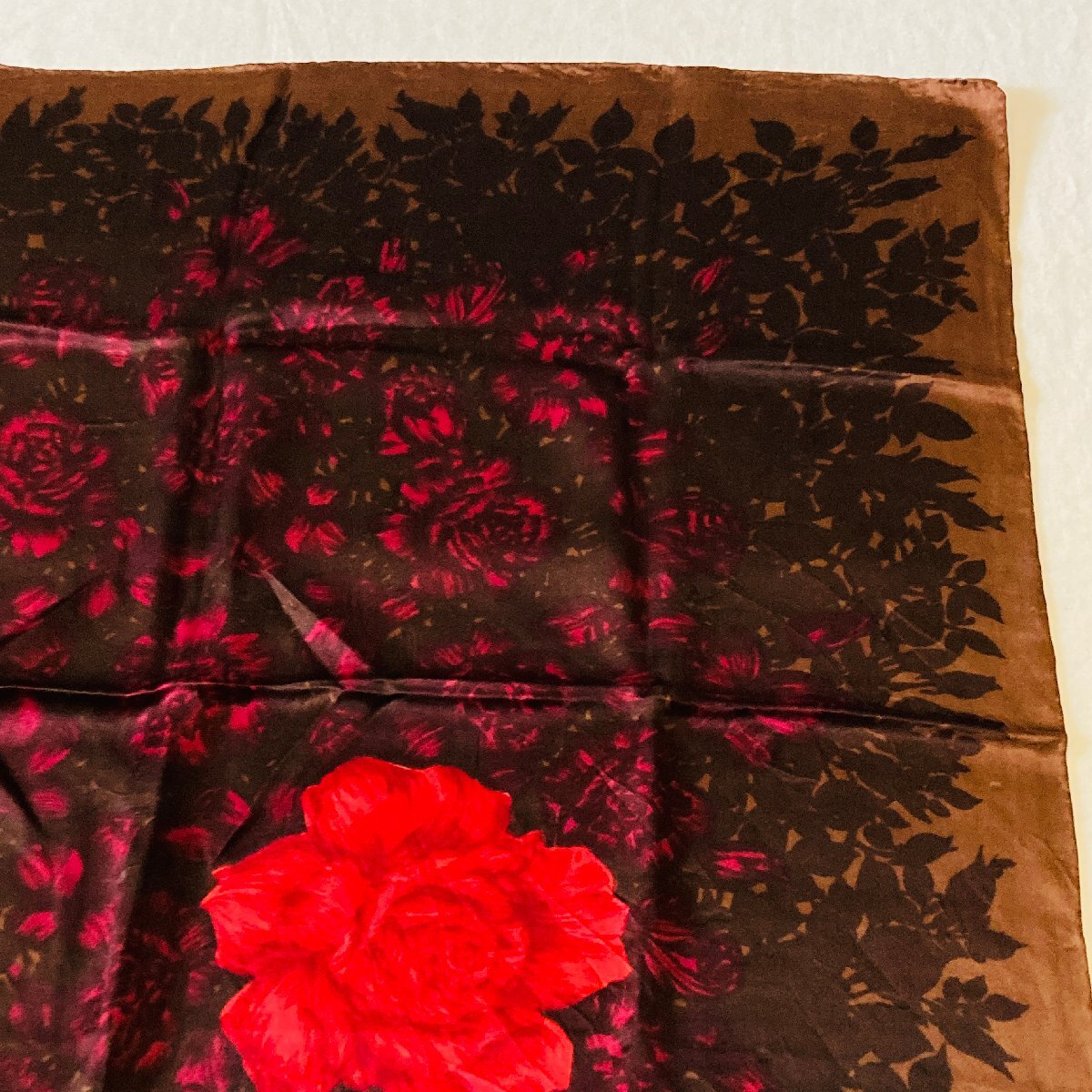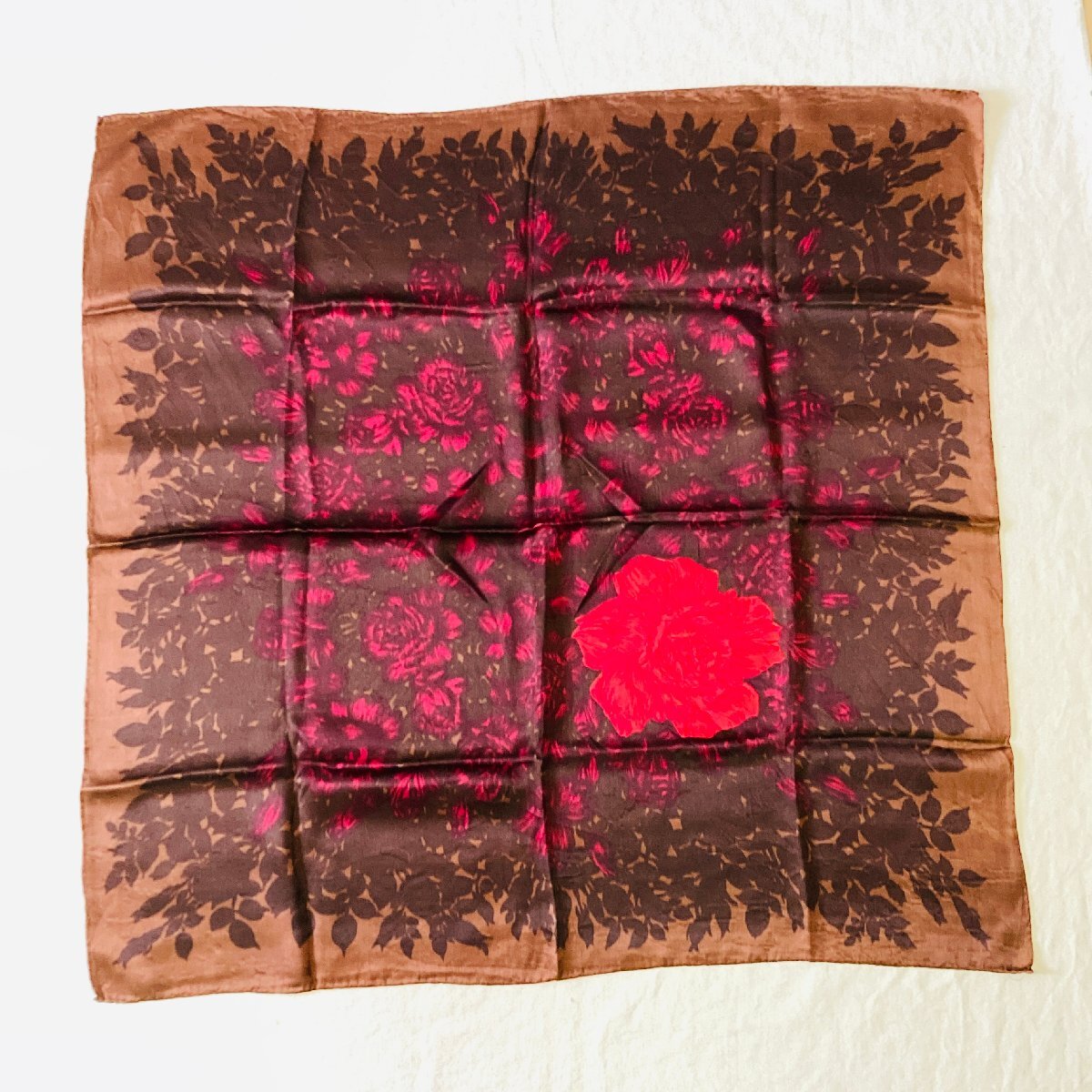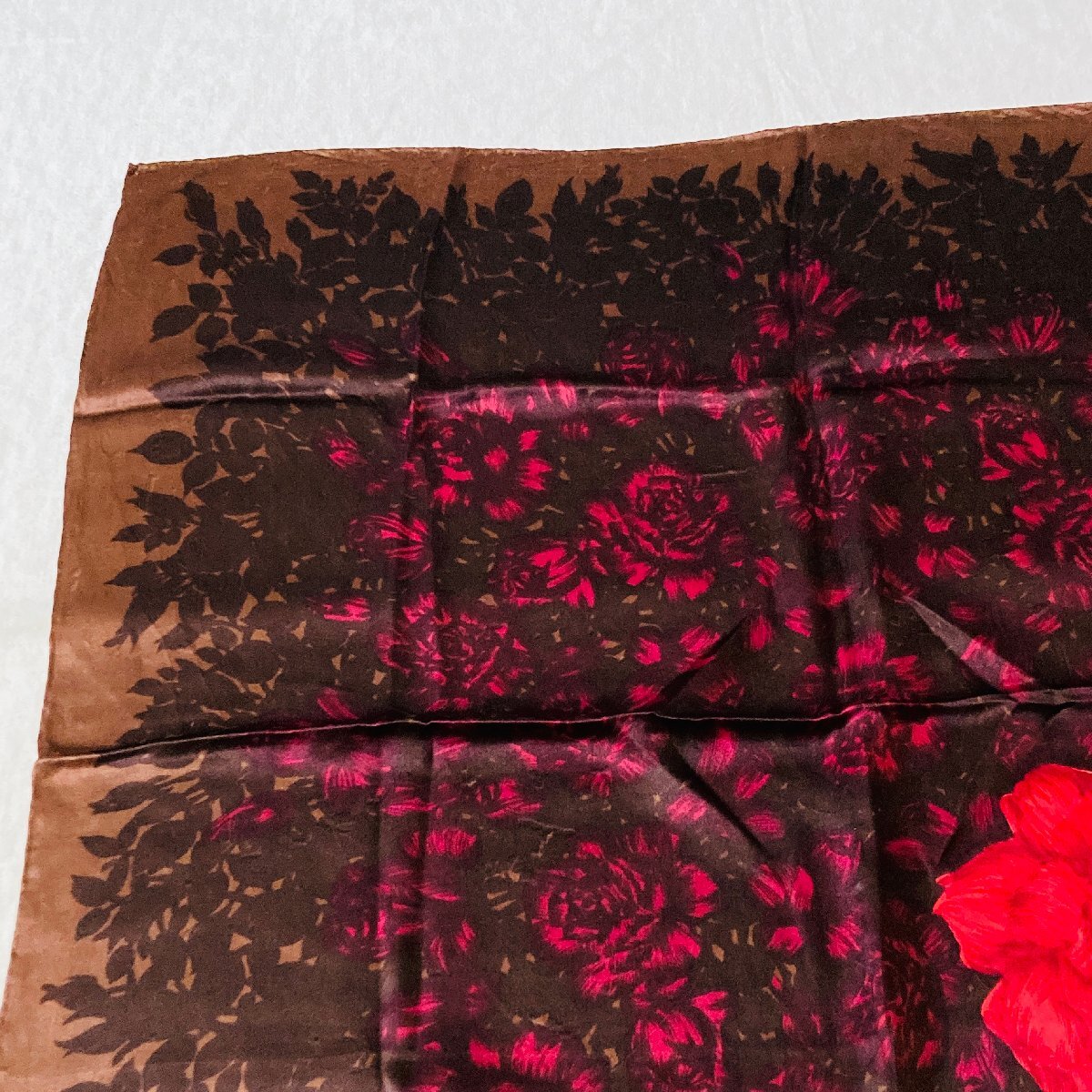 レディース 大判 スカーフ バッグスカーフ ブラウン系 バラ/薔薇 フローラル モチーフ