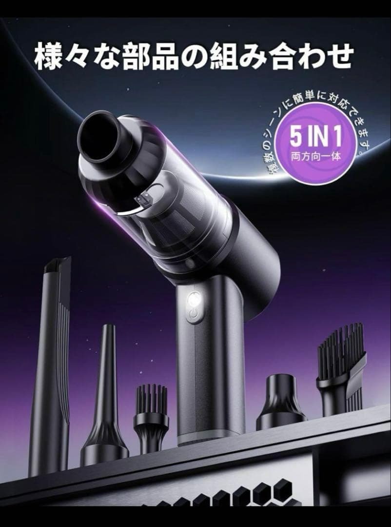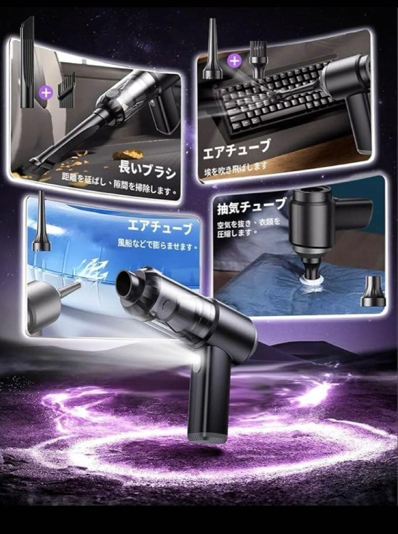 吹き飛ぶ 吸い込む 空気入れ 空気抜き&交換可能なノズルが付属しています。本製品は単なる掃除機ではなく、日常生活のあらゆるシーンで活躍するマルチツールです。5種類のアタッチメントも付属してしており、強力なブロアー機能を使えば、簡単にパソコン内部のホコリを取ることができます。また、衣類用圧縮袋の排気、風船の膨らませなどにも使えるので、コードレスでコードレスで設置場所・掃除場所にかかわらず使いやすいです。