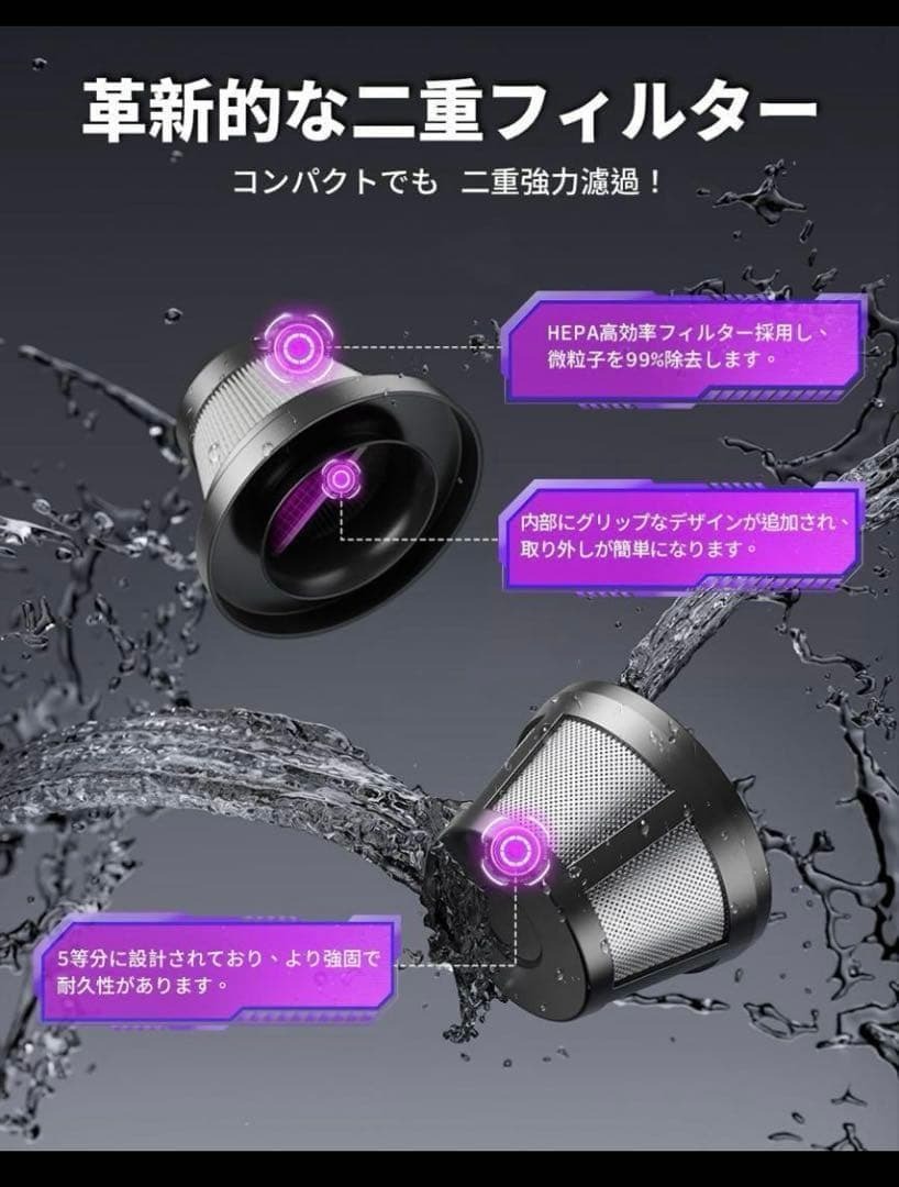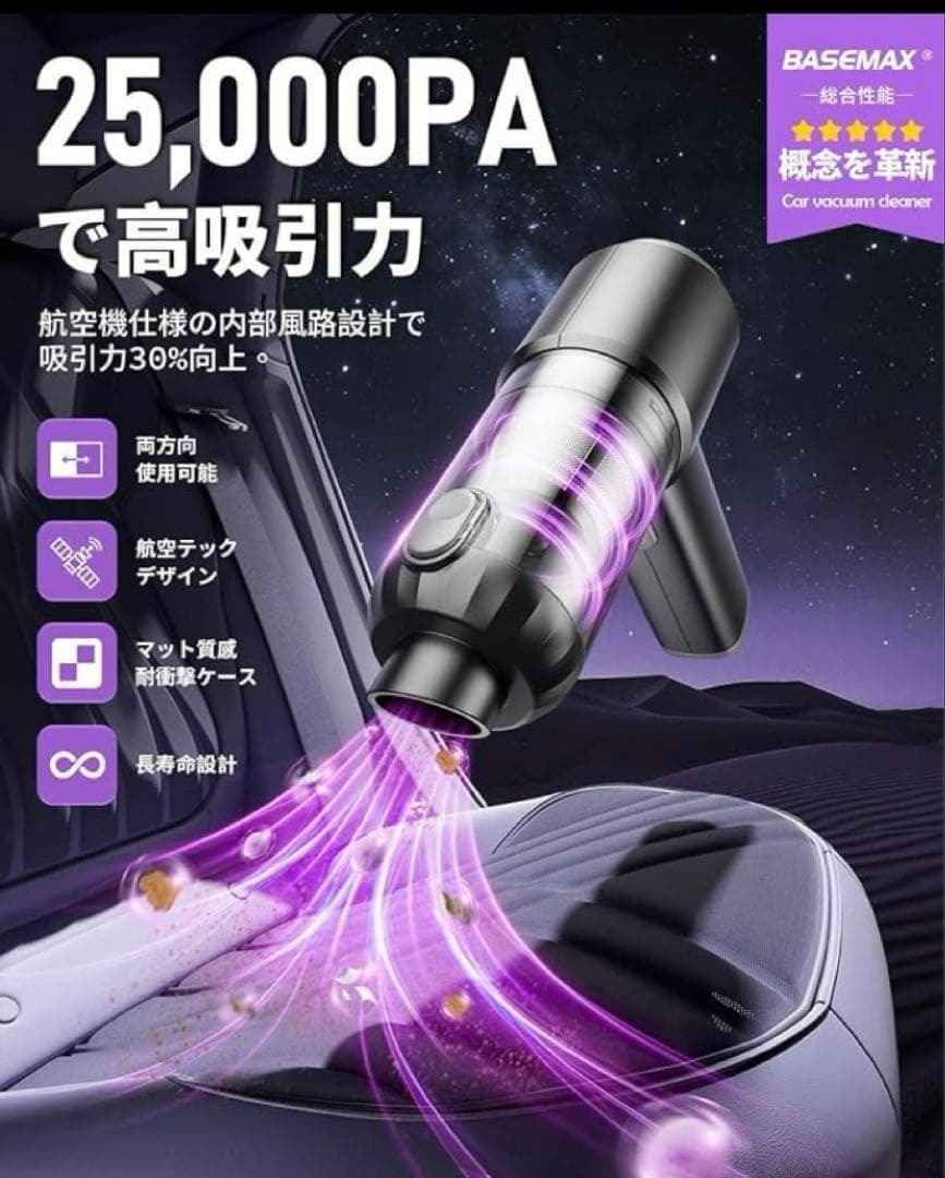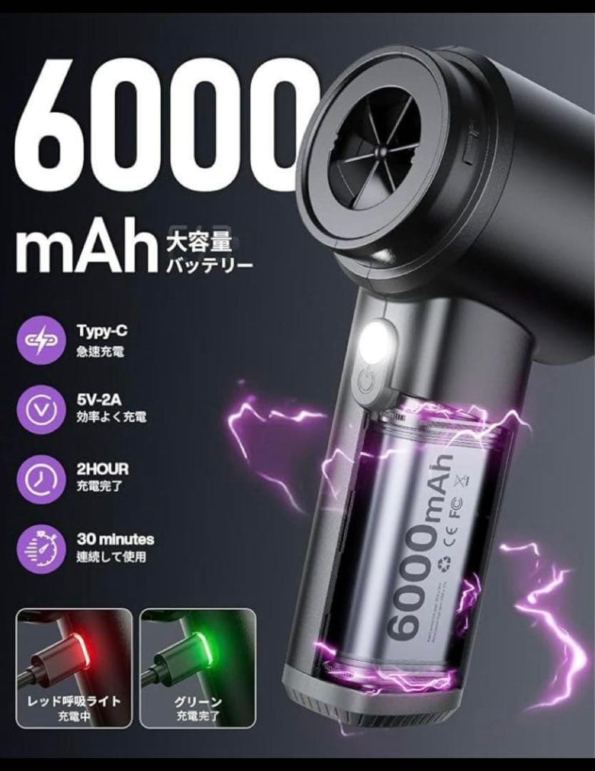 ハンディ掃除機大容量バッテリーを内蔵し、最大30分間の連続使用が可能。Type-C対応の急速充電機能により、フル充電はわずか3時間。スマートチップ制御により充電効率を高め、過負荷や過熱を防ぎます。