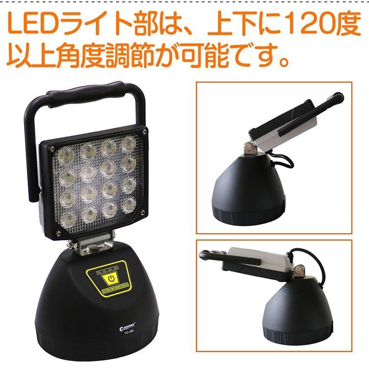 ・【人気のコードレス作業灯はついにパワーアップ!48Wで驚くほどの明るさを実現! 】 ・【強力マグネットを内蔵しました!】 鉄面に驚くほどしっかりと接着し、逆さまや垂直に使用しても落ちません。様々な角度・ハンズフリーで照射できる為、作業時にも大変便利です。 ・【底面には三脚用ネジ穴がつき】 本体の底面には三脚用ネジ穴(Φ8mm)があり、好きな三脚に装着可能。シーンに合わった様々な設置方法に対応します。 ※三脚は別売りです。 ・【バッテリー残量表示灯&充電表示灯を搭載!】 本製品の最大の特徴とも言えるのが、電量残量表示灯と充電量指示灯を組み込んだ設計になっていることです。表示は25%、50%、75%、100%の4段階です。バッテリーの残量があとどれくらいかやどの程度充電ができたか一目でわかる ・【ワンタッチで点灯4モード切替可能!。】 ハイ・ロー・SOS・フラッシュ4モードを搭載! ハイ・ローモード:使う場所や時間帯によって用途に合った使い方ができる。。 SOS・フラッシュモード:イザというときに役に立つ! ◆主な用途◆ 電設工事(天井裏工事)、リフォーム建築などの照明として最適。 農業機械、建設機械、船舶、トラック荷台等の作業時の備えに、 交通整理に、事故救援に、工事現場の作業灯として 倉庫作業、自動車整備、ガレージ、物置などの照明として。 構造が簡単でありながら、実用性はかなりあります。電源の無いところ大便利! |