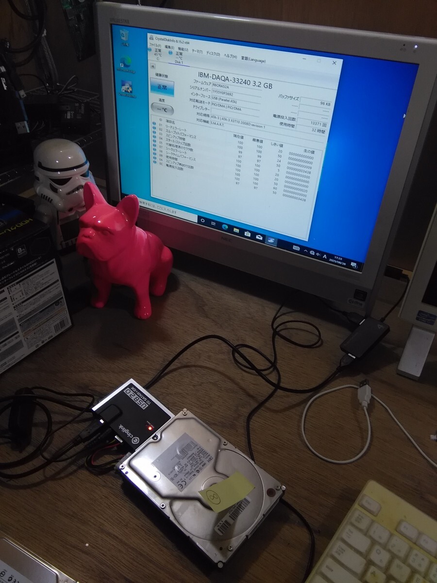 CrystalDiskInfoで確認しましたが、容量が小さすぎるからか表示がエラーになってしまっています。