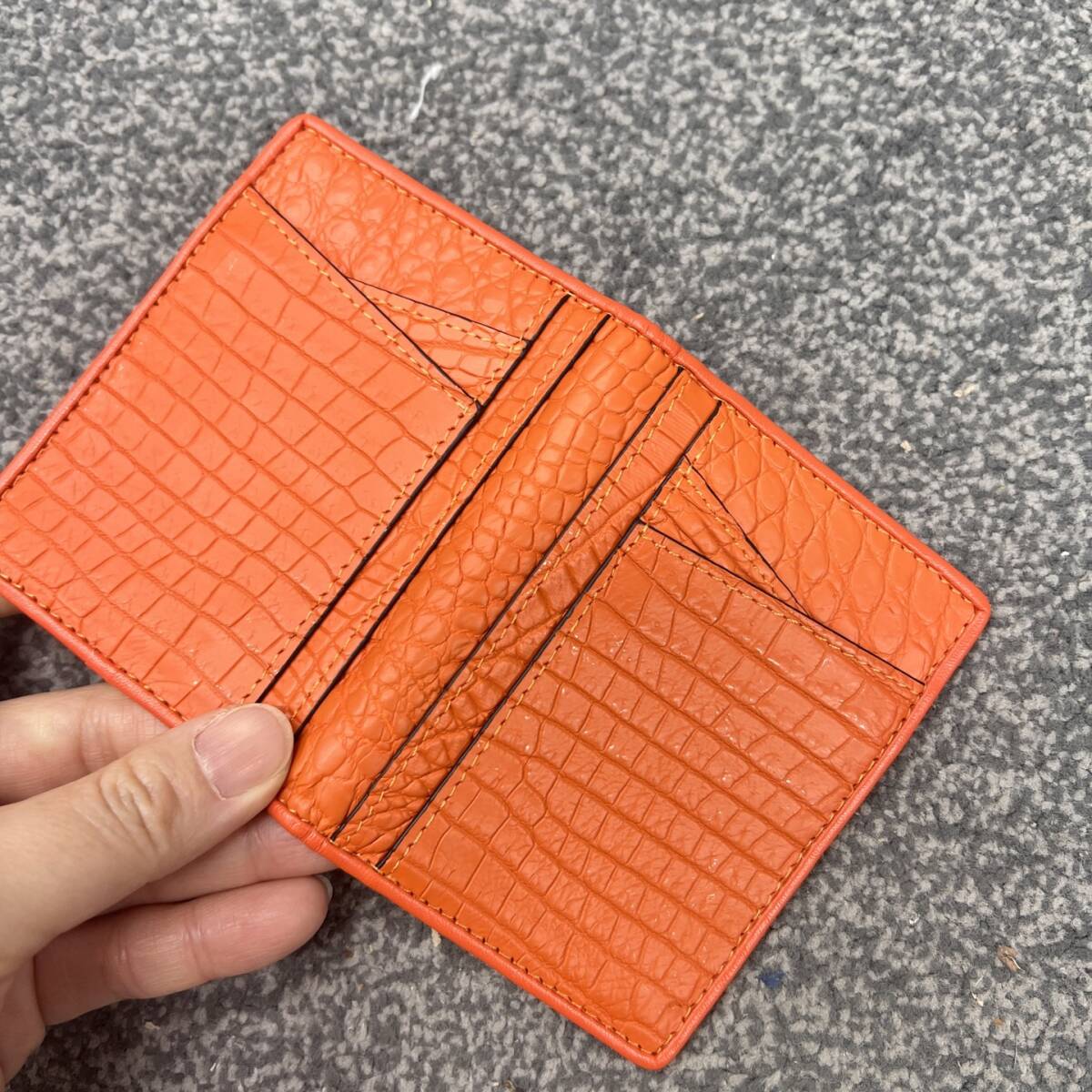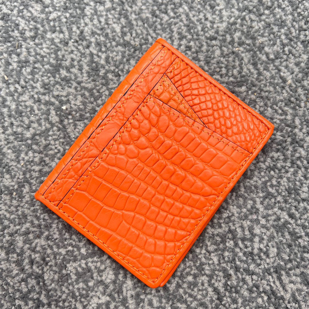 100%本物クロコダイルレザー使用 マット加工 丈夫なワニ革 カードケース レディース マンズ 多色あり 運転免許証 名刺入れ オレンジ