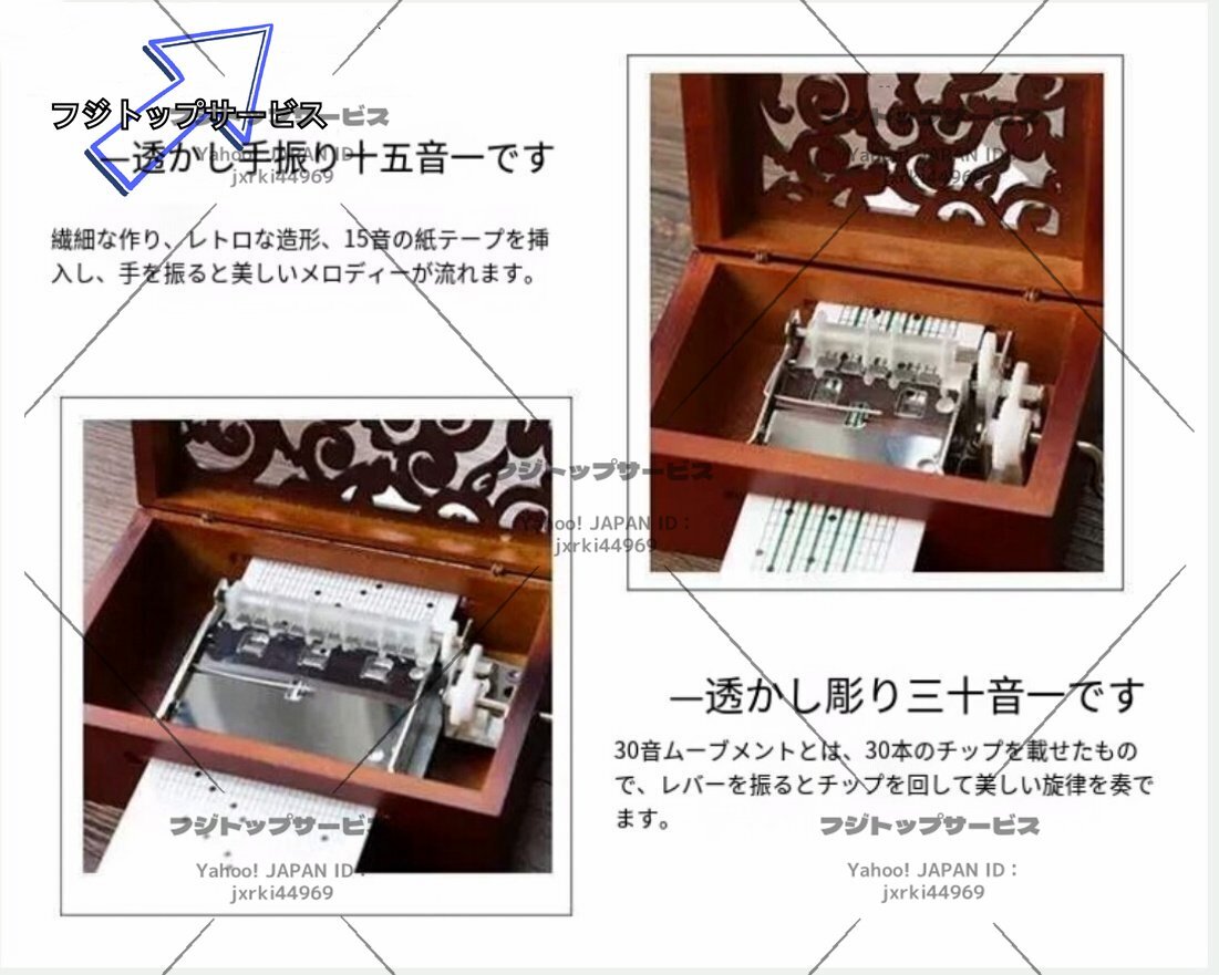 ■商品説明■ 高級オルガニート30弁 紙15曲枚ジブリ曲 30ノート 手回し DIY 音楽 創作オルゴール機械 ムーブメント 楽器 音楽 伝統 木製 木彫り オルゴール 音色 ヒーリング リラックス 綺麗な音 子供 大人 夏休み 春休み 長期休み 演奏会 自由研究