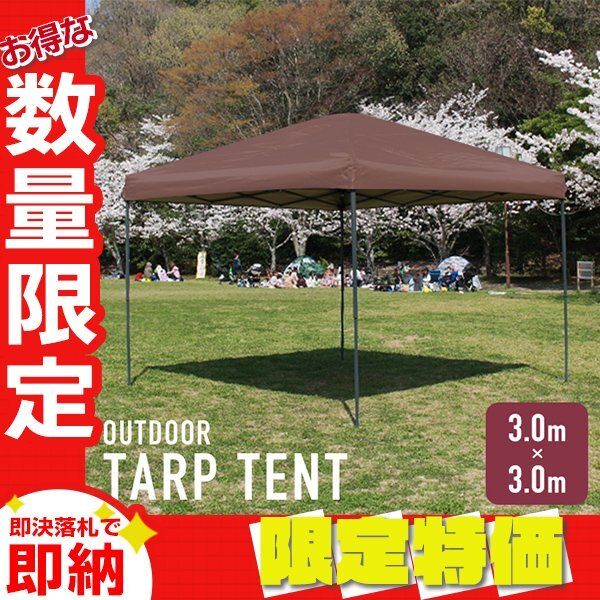 ワイドなサイズ300×300cmのワンタッチタープテントです。 組み立てはワンタッチで簡単! 大人2人で持ち上げてゆっくり広げるだけ! フレームは強度で耐久性のあるスチール製を採用! アルミ製より少し重いですが、強度で安定性があります!! 急な雨が降っても安心の撥水加工が施されており、大人数のバーベキューやスポーツ観戦、アウトドア、休憩所にぴったり。 持ち運びに便利な専用収納バック付き! 【商品仕様】 カラー:ブラウン 商品サイズ(約): ・使用時:幅300×奥行300×高さ171~260cm ・収納時:幅120×奥行20×高さ20cm 材質:スチール、ポリエステル 重量(約):11kg 【商品内容】 タープテント本体 ロープ ×4 ペグ ×8 専用収納ケース |