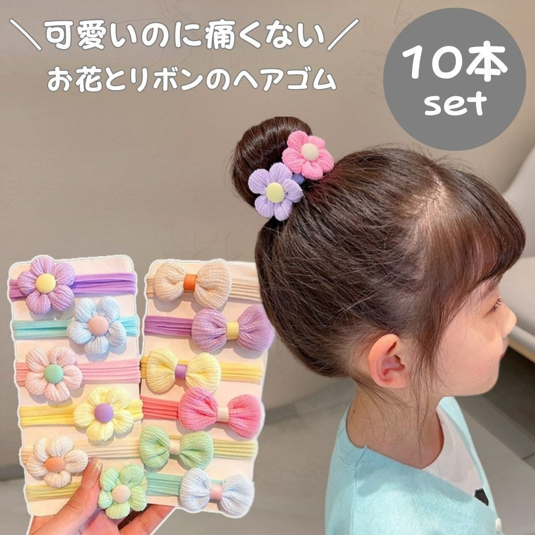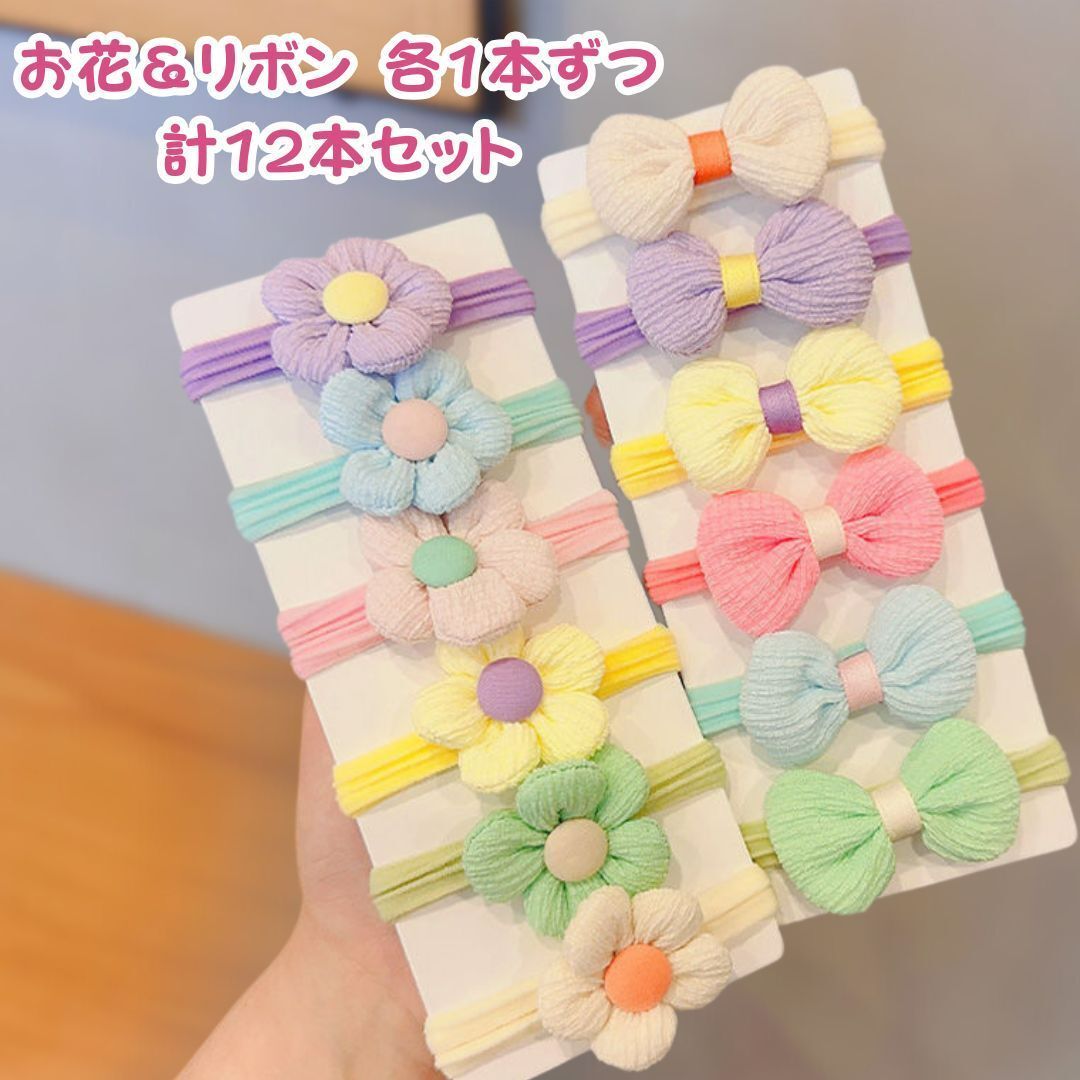 ・セット内容:ヘアゴム 計12本(お花×6/リボン×6)