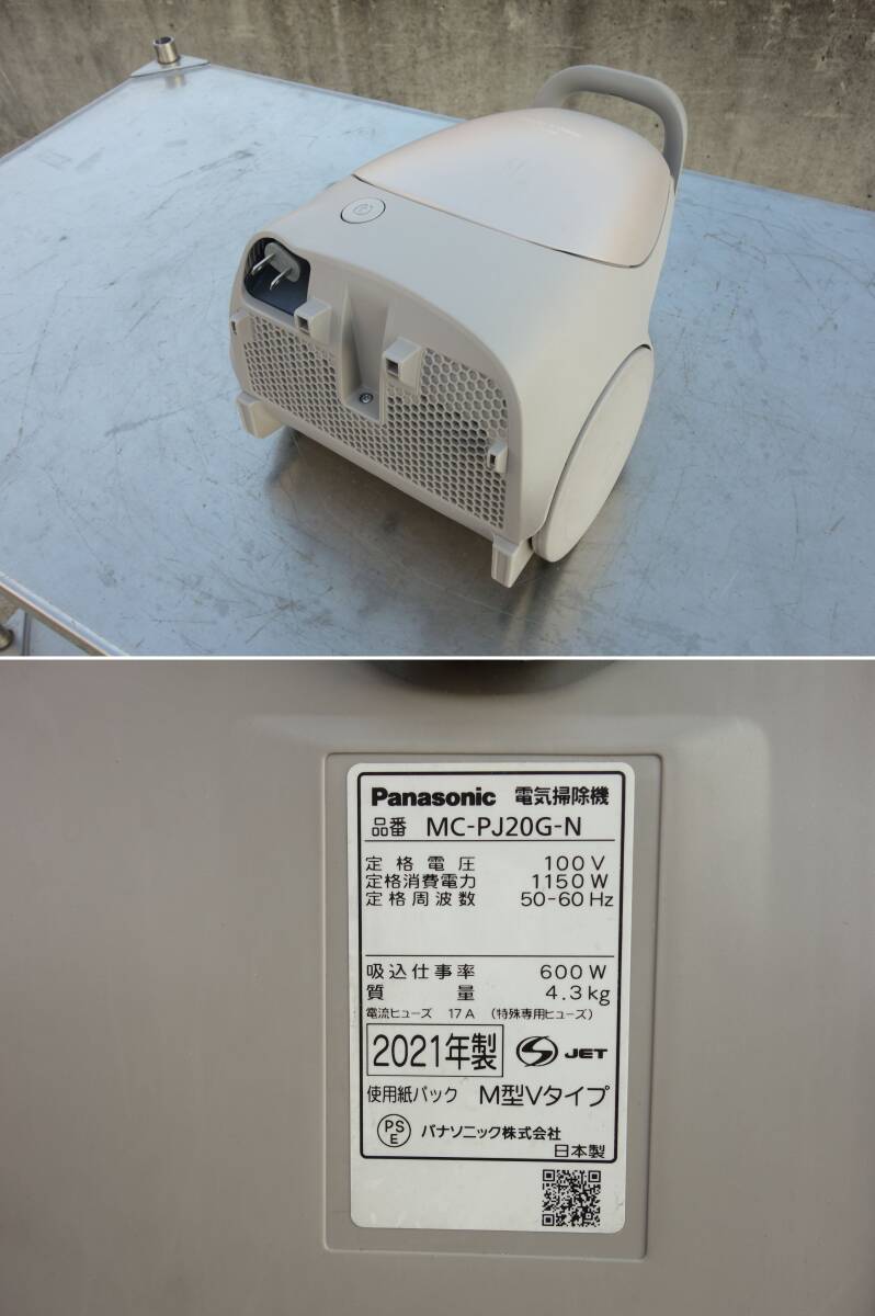 【中古】M▽パナソニック 掃除機 電気クリーナー 2021年 紙パック式 キャニスタータイプ パワーノズル 吸込仕事率600W MC-PJ20G (35001)
