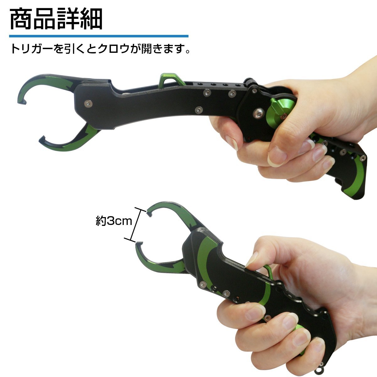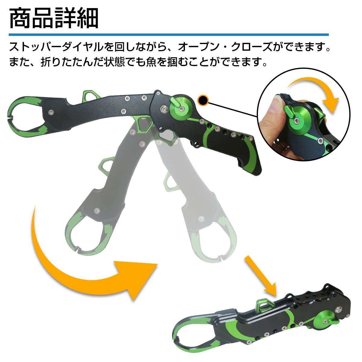 折りたたみ 魚掴み器 フィッシュグリップ フィッシンググリップ フィッシュキャッチャー フィッシュグリッパー アルミ製 ブラック 黒