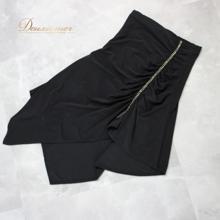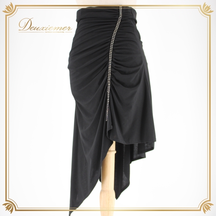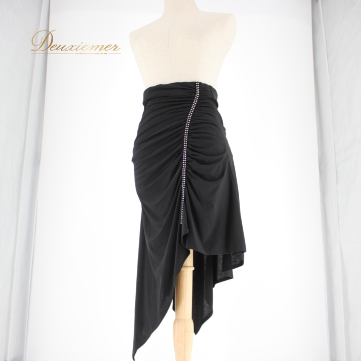 | 【商品名】社交ダンス衣装 スカート 【サイズ】表記なし 平置き実測:総丈約75cm※裾の一番長い所まで、ウエスト約32cm~ ※実測の為、多少の誤差はご容赦願います 【仕様】 ・ウエストゴム仕様 ・伸縮性有り 【品質表示】 ポリエステル ------------------------------------ 【ポイント】 ▽Create-Sun クリエイトサン ▽隙のないモノトーンブラック ▽繊細に光を放つラインストーン ------------------------------------ 【撮影時使用トルソー】 種 類:女性用トルソー9号 (一般的に使用されるサイズです) サイズ:肩幅約38cm、バスト約86cm、ウエスト約64cm、ヒップ約84cm |