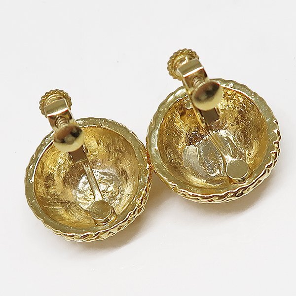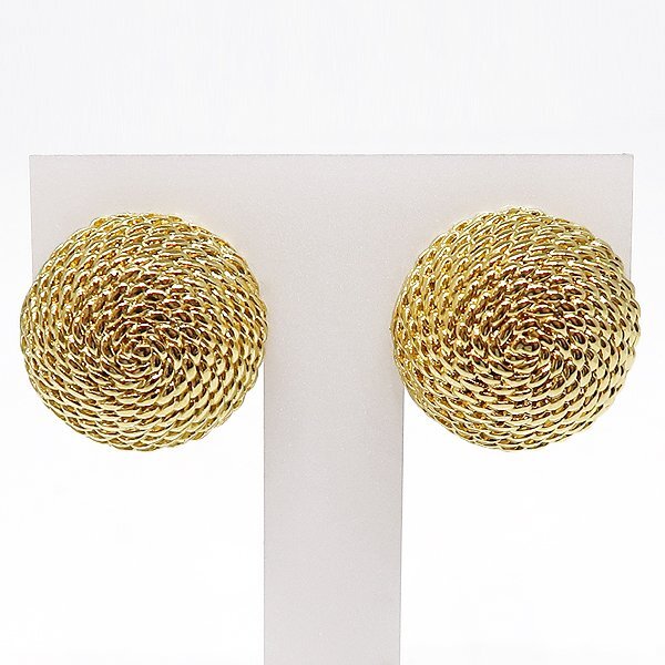 DKG★送料無料★ ヴィンテージ 美品 ゴールド カラー ラウンド 半球 アンティーク 縄 螺旋 レトロ イヤリング 69