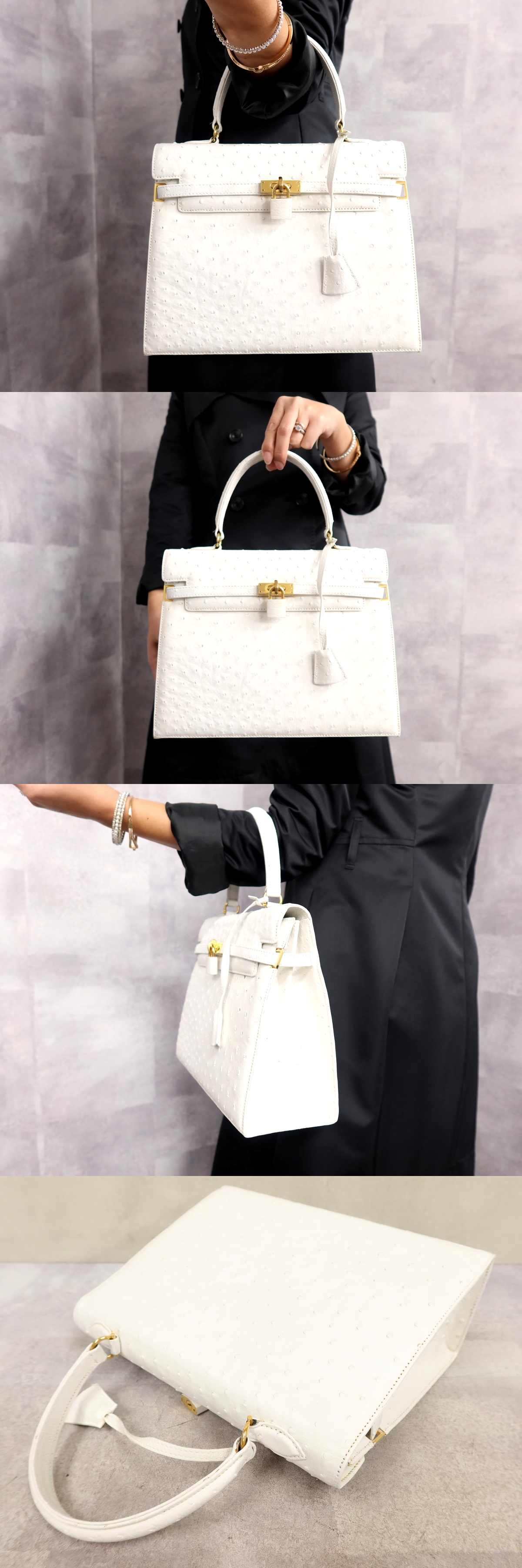 ●超美品●MORABITO モラビト●トップハンドル●オーストリッチ 本 ダチョウ 革●ハンド バッグ●ホワイト●ゴールド金具●腕掛け●Js62966