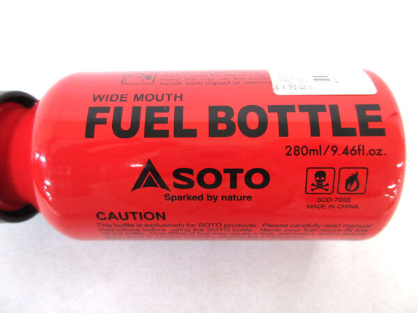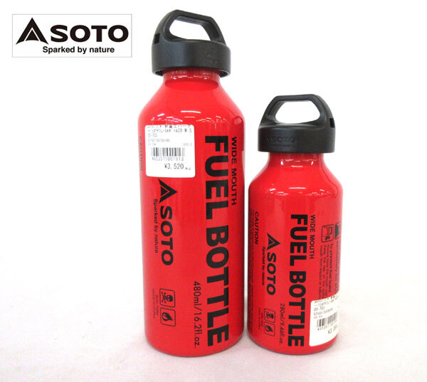 | 内 容 | ■SOTO 広口フューエルボトル 燃料ボトル ■カラー:レッド ・280ml用×1点 ・480ml用×1点 燃料用ボトルを強調する赤色デザイン。 CR(チャイルドレジスタンス)キャップを標準装備。 ◆総額 6600円相当 |