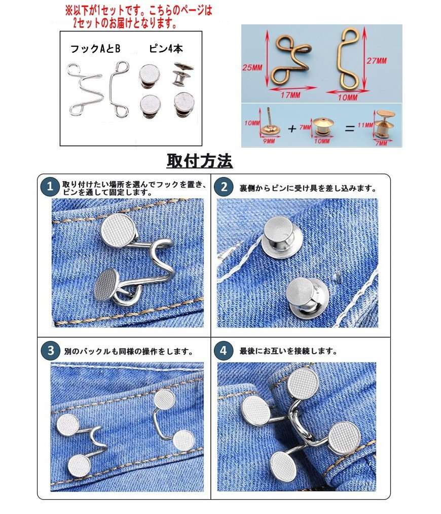 【VAPS_1】ウエストバックル 2セット 《ブラック》 ウエスト調整 ズボン スカート お直し サイズ調整 アジャスター 送込