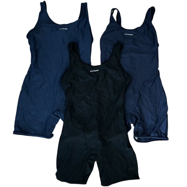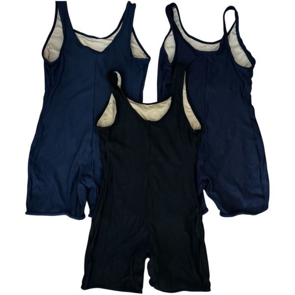 49【整理品リサイクル3枚セット】フットマーク女子競泳水着Lサイズ★光沢濃紺ネイビー黒ブラック★大きいサイズ男性も