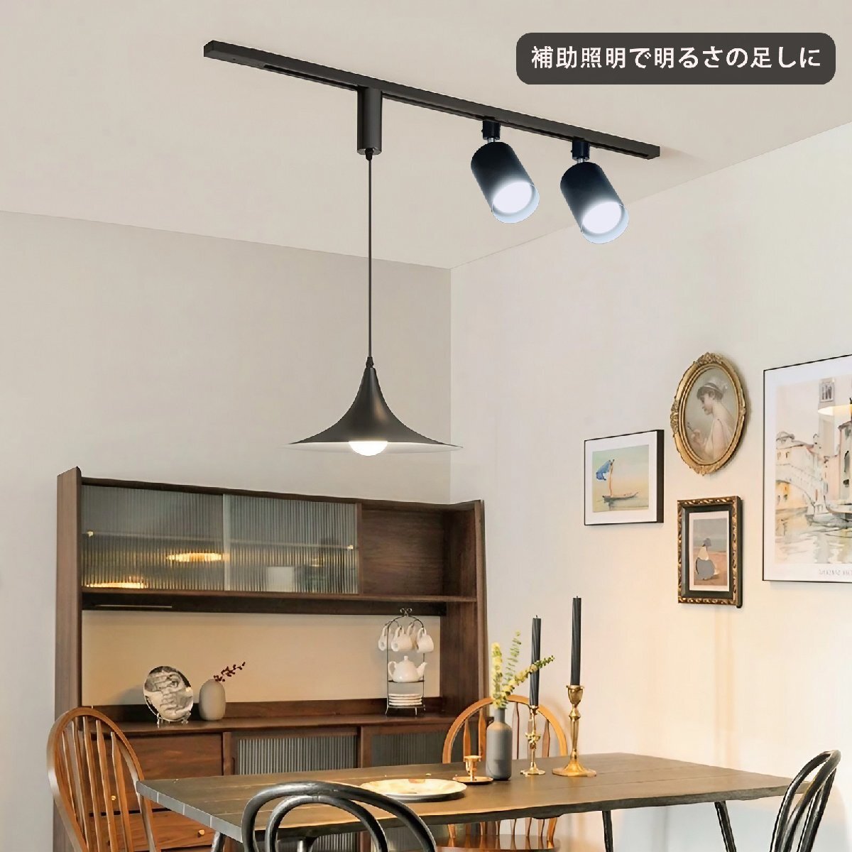 【インテリアを彩る照明】:壁や絵などを照らすことで、雰囲気のある空間を演出できます。また、ダイニングテーブル上の照明としても素晴らしいです。