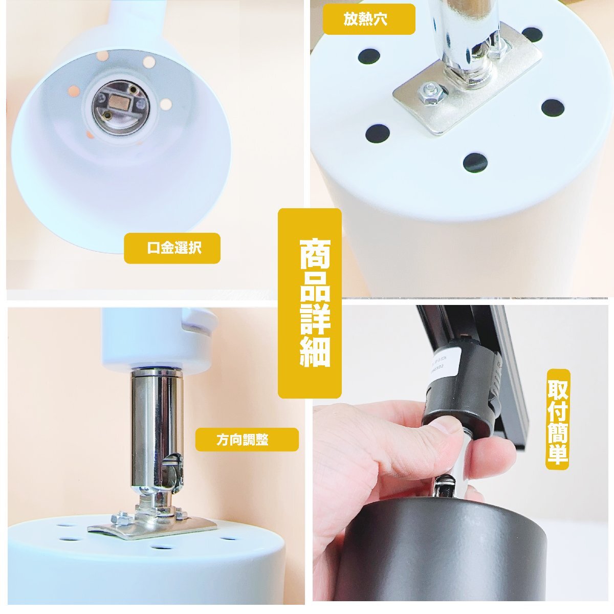 【簡単取り付け】:配線がダクトレールに設置されている場合、そのまま溝に配置可能です。コンパクトなサイズなので、一人暮らしの女性でも容易に取り付けられます。