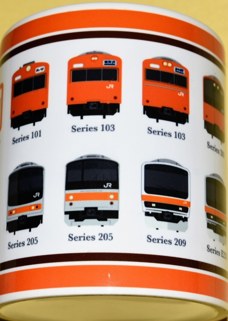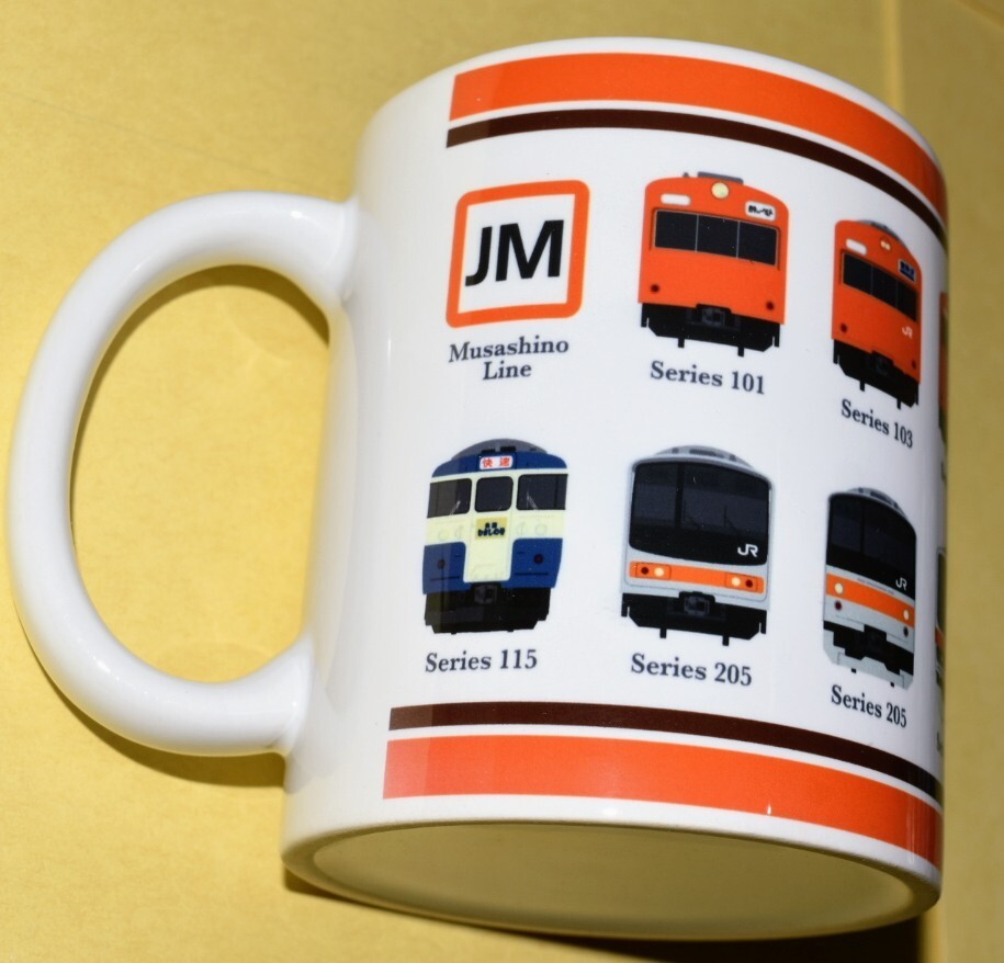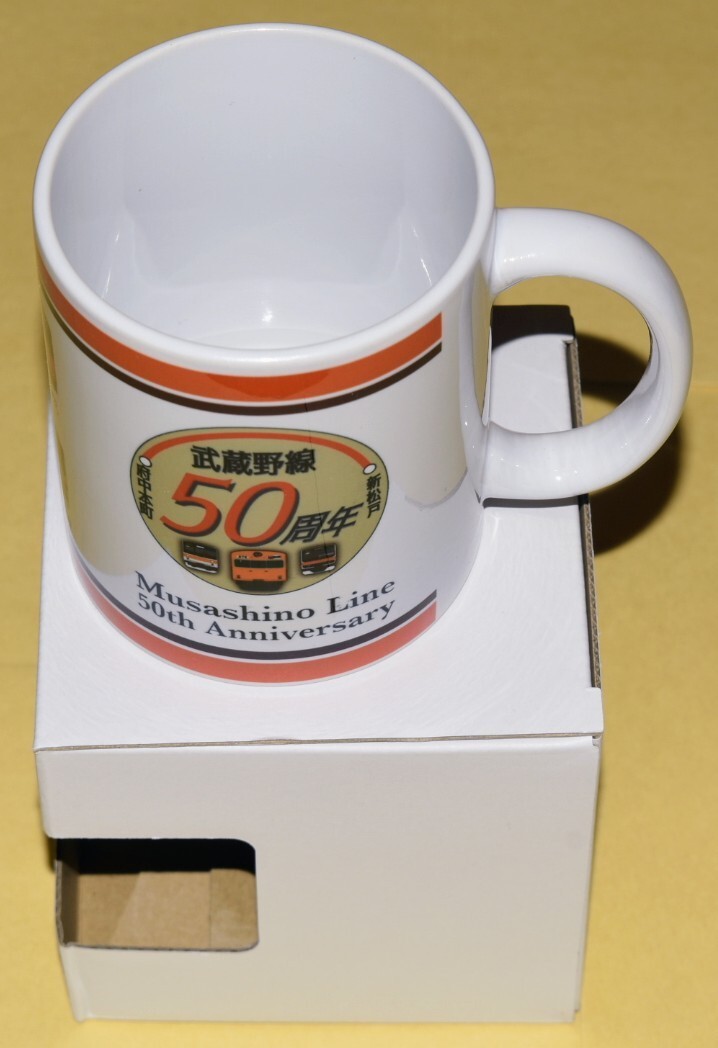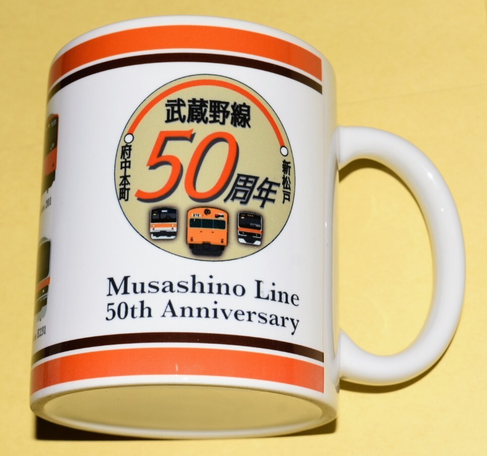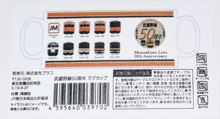 ◎マグカップにデザインされている、武蔵野線開業50周年記念ヘッドマークのデザイン部分は掲載画像②を、歴代の武蔵野線を走った車両のデザイン部分は掲載画像③・④・⑤をご参照ください。