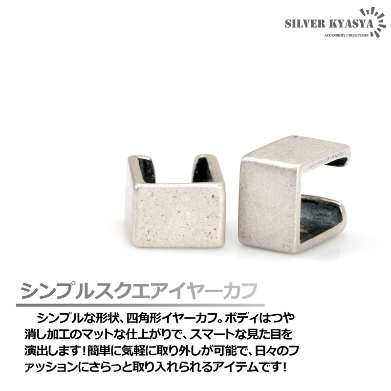 スクエアイヤーカフ シルバー925 四角 小ぶり イヤーカフ 挟むだけ 耳の穴不要 アレルギー対応 片耳用