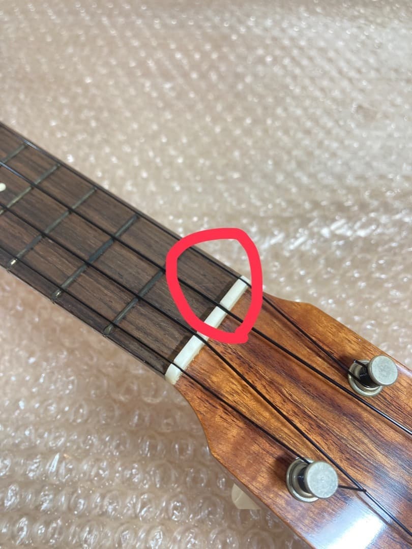 隅々までよく確認したところ、弦の下に極小さな傷があります。