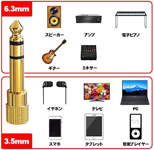 3.5mmステレオミニプラグ(オス) to 6.3mmステレオ標準プラグ(メス) 変換プラグ アダプタ 標準プラグ⇒ミニプラグ 電子ピアノ用 金メッキ
