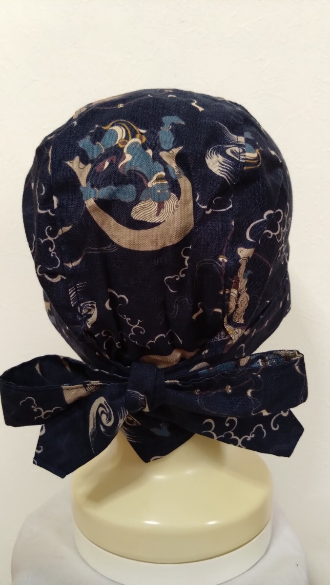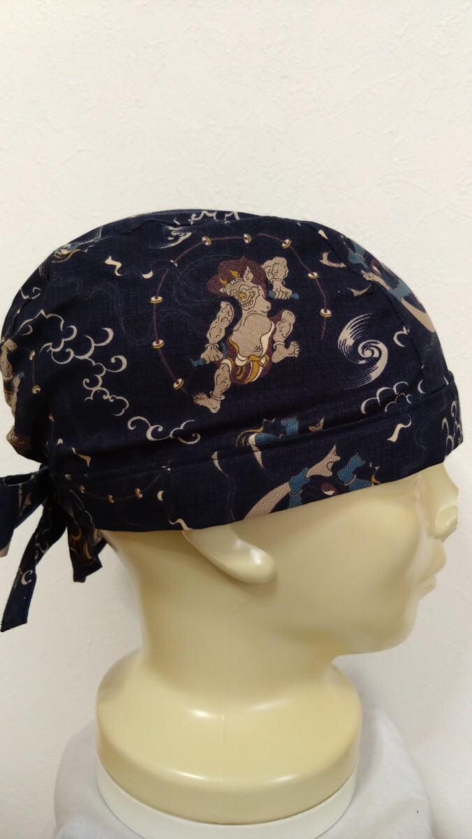 短★バンダナキャップ★ハンドメイド 和柄 風神雷神 紺