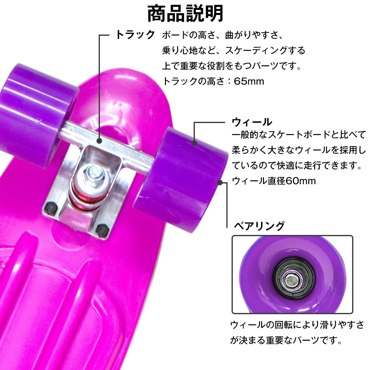 カラフルで可愛いスケートボード!ペニータイプのスケボー! ミニクルーザーボード スケーター アウトドア スポーツ ピンク