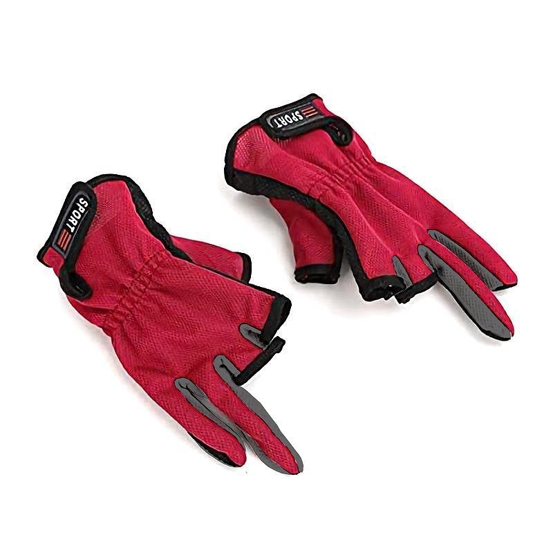 送料0円 釣り用 手袋 レッド 三本指出し 滑り止め 汗吸収 レジャー スポーツ フィッシング 釣り 指先 3本 手 グローブ 作業 針 魚 海