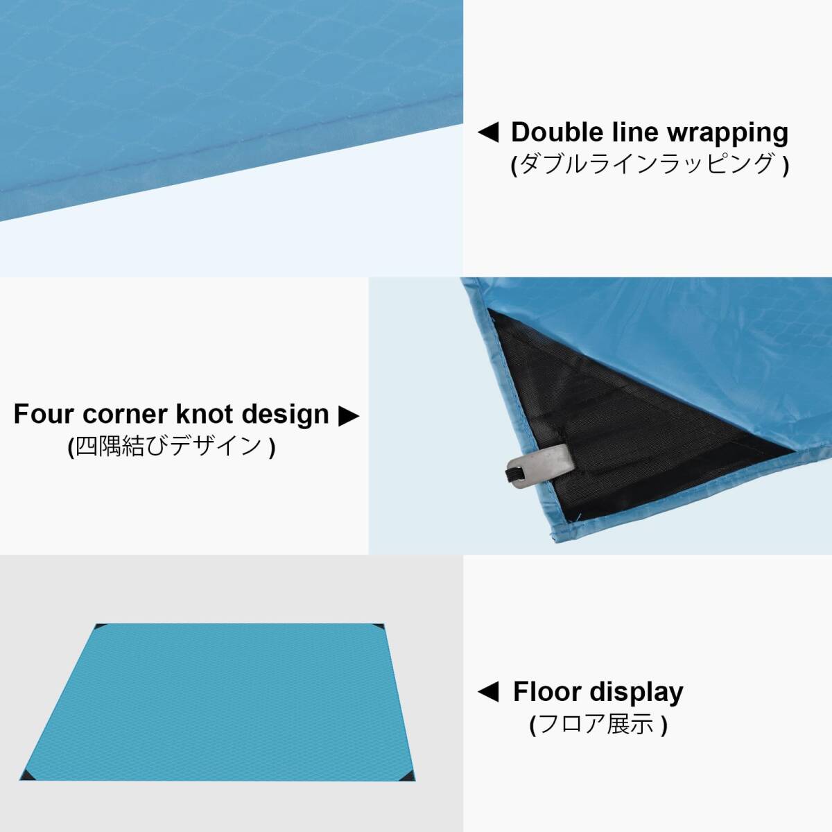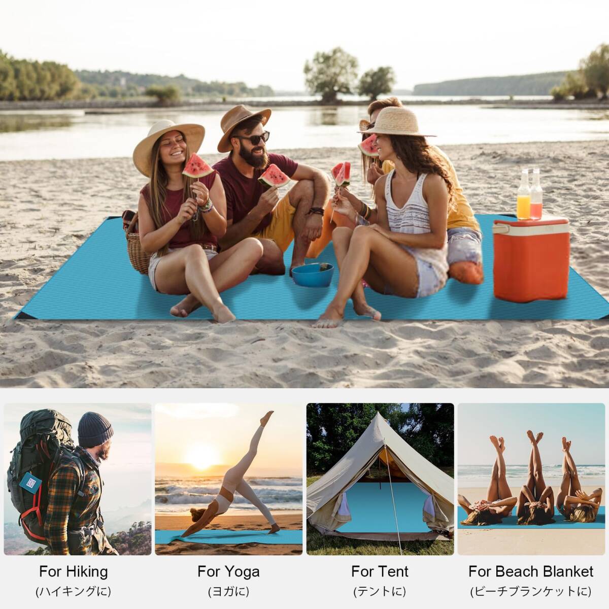 Leisure Sheet, レジャーシート, 携帯ピクニックシート, 防水ビーチマット, キャンプSand-Free毛布 180 x 150cm, 大人4~6名様用, 折りたたみ式のテントシート,軽量地上シート,集積記憶袋 (青い)