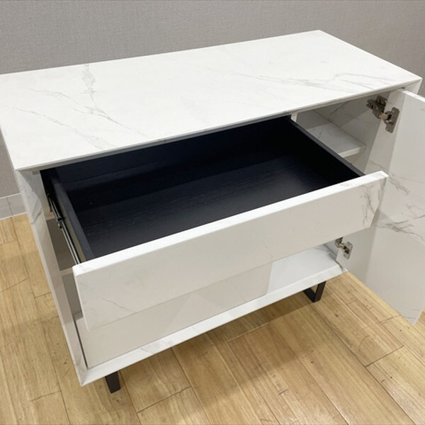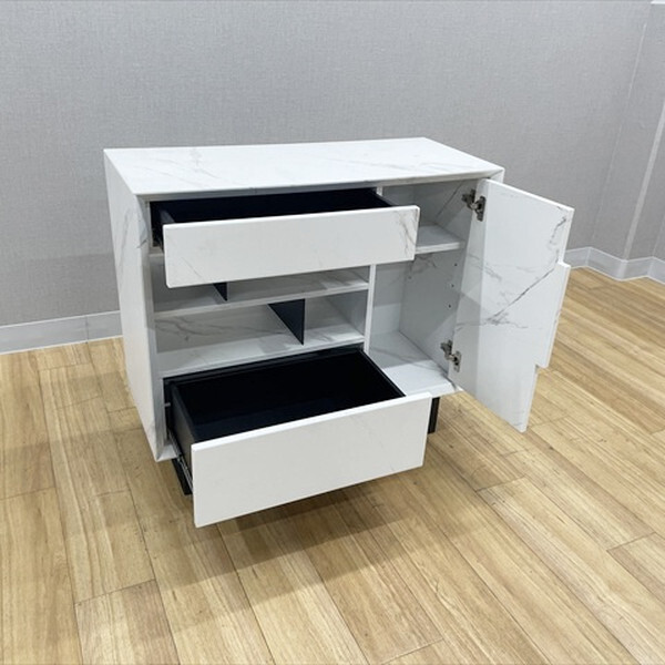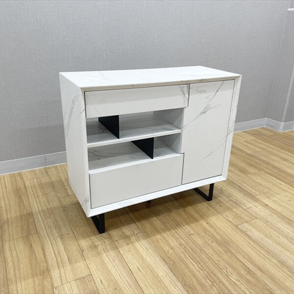 ■取り扱い番号 CE-878545B ■仕様 製品名 : サイドキャビネット 暮らしのデザイン ニベル KIM-NIBEL90CAB 色素材 : ホワイト 外寸 : 幅900mm 奥行き380mm 高さ800mm ランク : Bランク ■特徴 棚板2枚(可動棚1枚) 高級感漂うおしゃれな石目調のサイドボード。取っ手を無くしたフラットなデザインが特徴です。インテリア用としても収納としても便利です。 |