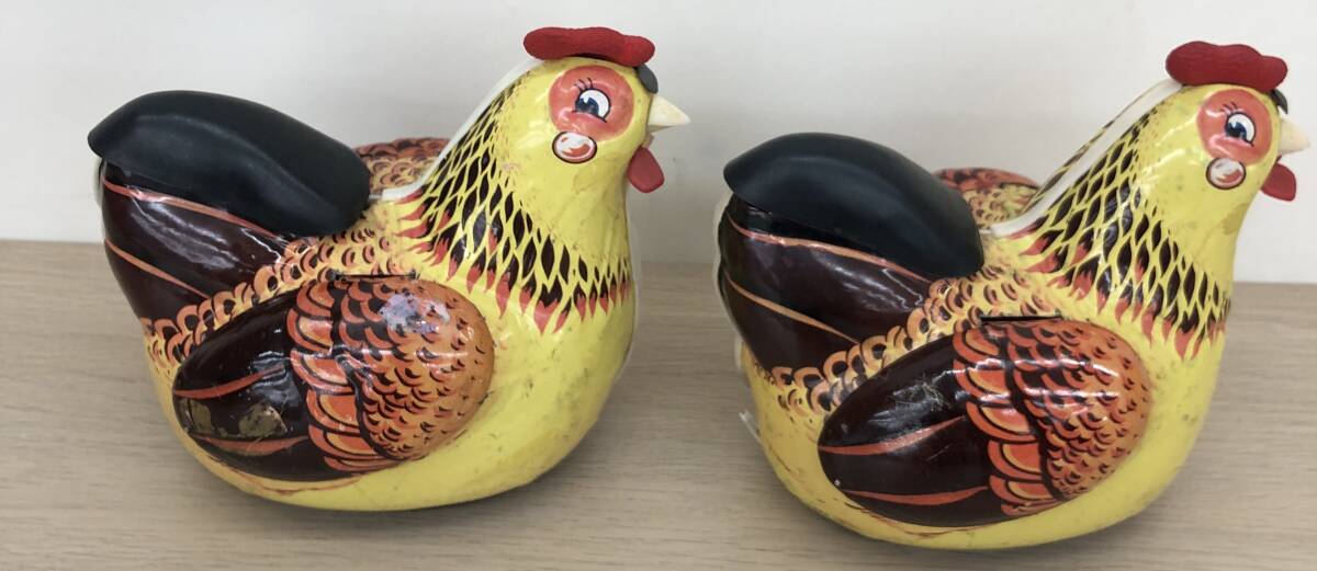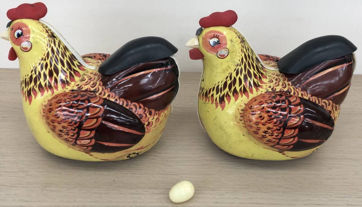 RT-272【中古品・現状品】ブリキのニワトリおもちゃ HEN LAYING EGGS 中国製 電池式 鶏 チャイナトイ レトロ 卵2個 二羽とも不動