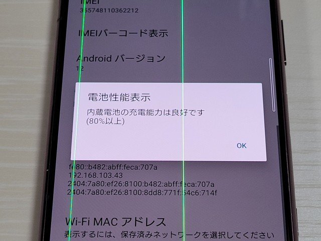 ■不具合箇所 : 液晶に緑色の縦線が2本映ります。
