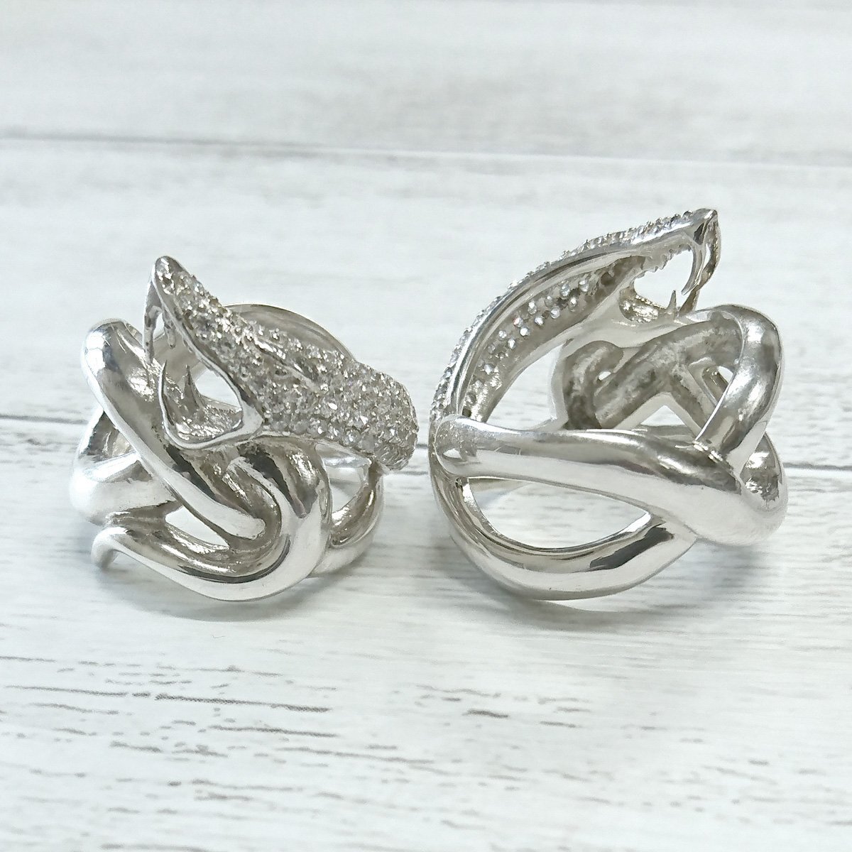 【C00002】シルバー 指輪 リング 蛇 スネーク メンズ レディース アクセサリー ジルコニア 21号