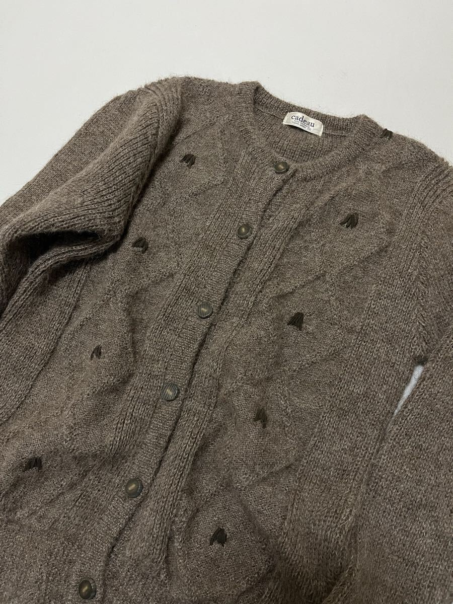 ウール100%表記ですが、アルパカウールのような、少し毛足のあるニット素材のカーディガンです。