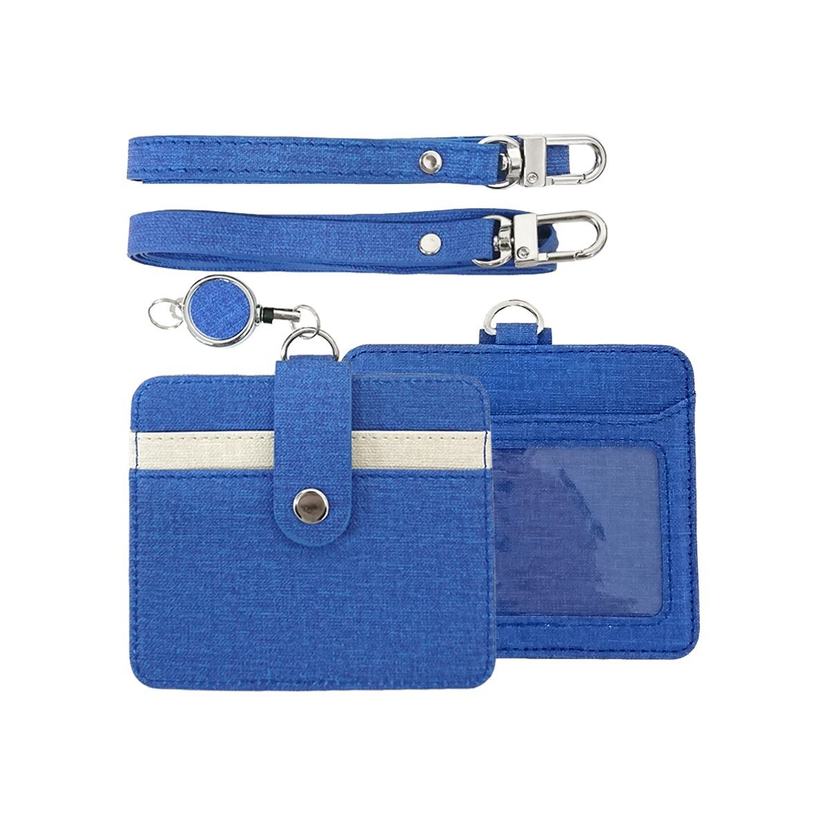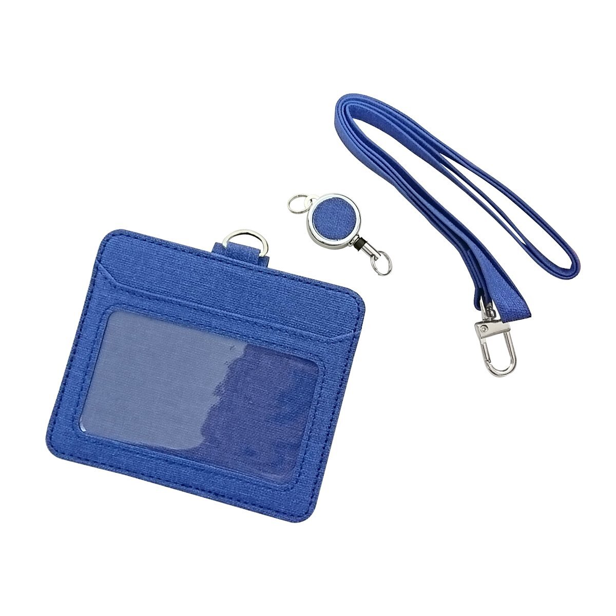 【C10621】送料無料 IDカードホルダー ブルー 横型 リール付き カードケース パスケース 定期券 ポケット 伸びる