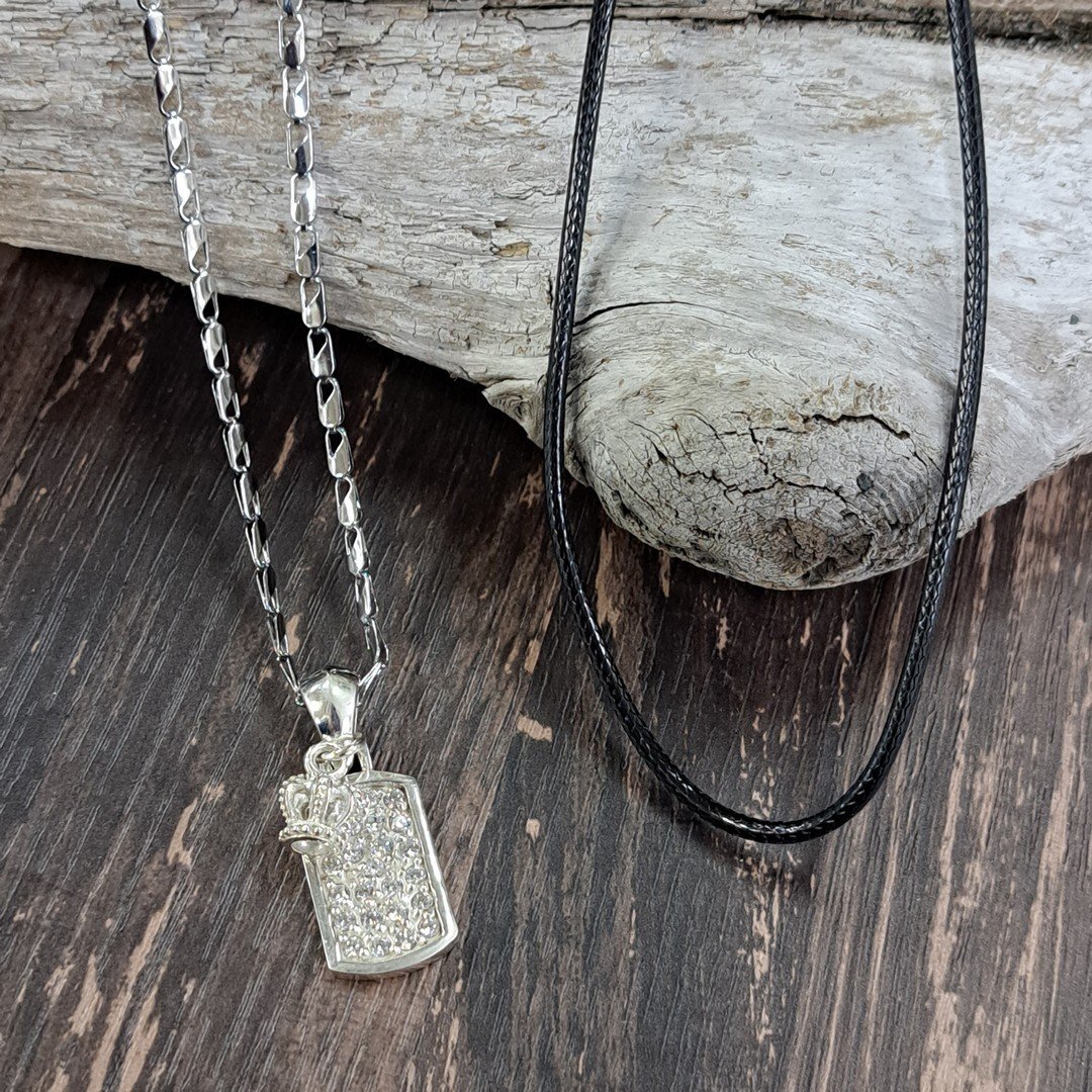 【C7025】送料無料 シルバー925 チャーム タグ ホワイト 王冠 ネックレス ペンダント アクセサリー ゴシック メンズ レディース チェーン デザイン 55cm