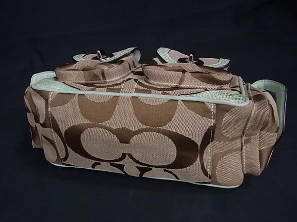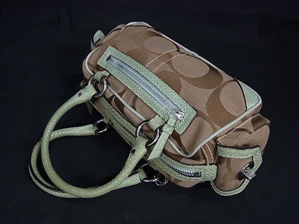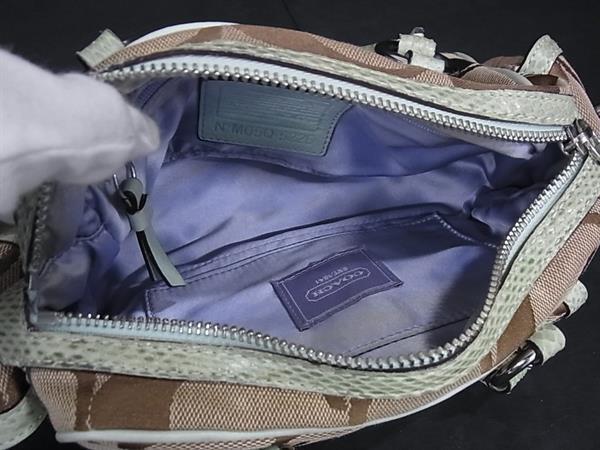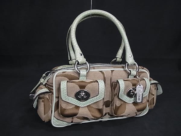 1円 COACH コーチ シグネチャー キャンバス×パイソン ハンドバッグ トートバッグ レディース ブラウン系×グリーン系 GA6485