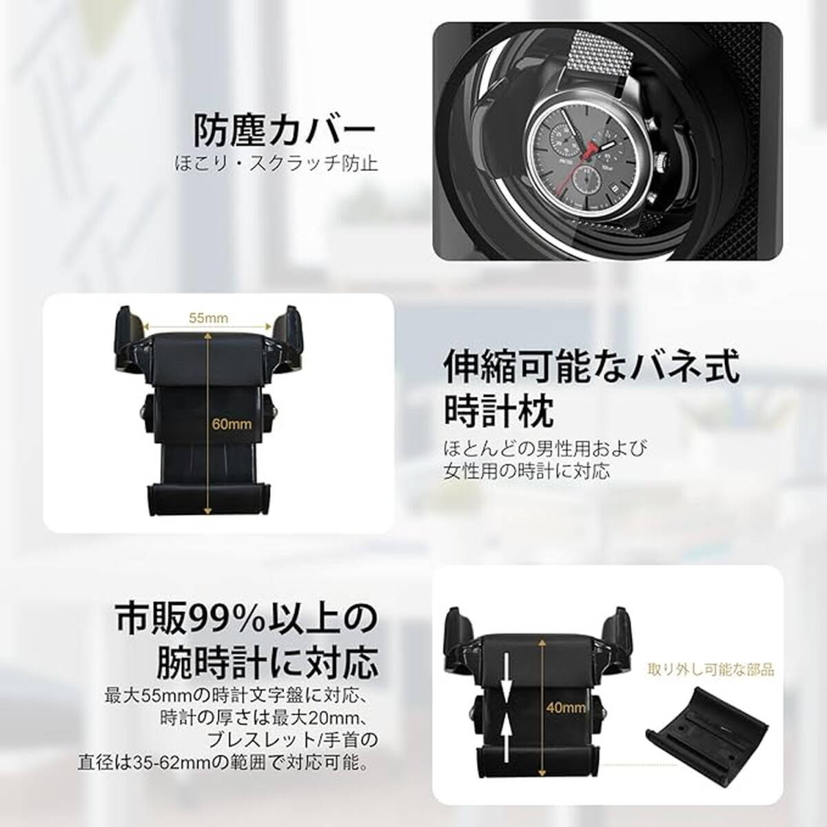 定期的に回転することで、腕に着けていないときでも自動巻き時計の巻き上げと正確さを保ちます。