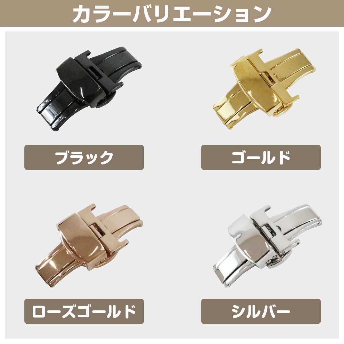 【送料220円】『16mm』プッシュ式 Dバックル ゴールド/金 バネ棒/バネ棒外し 両開き 観音開き 腕時計ベルト 時計バンド 留め具 尾錠 交換用