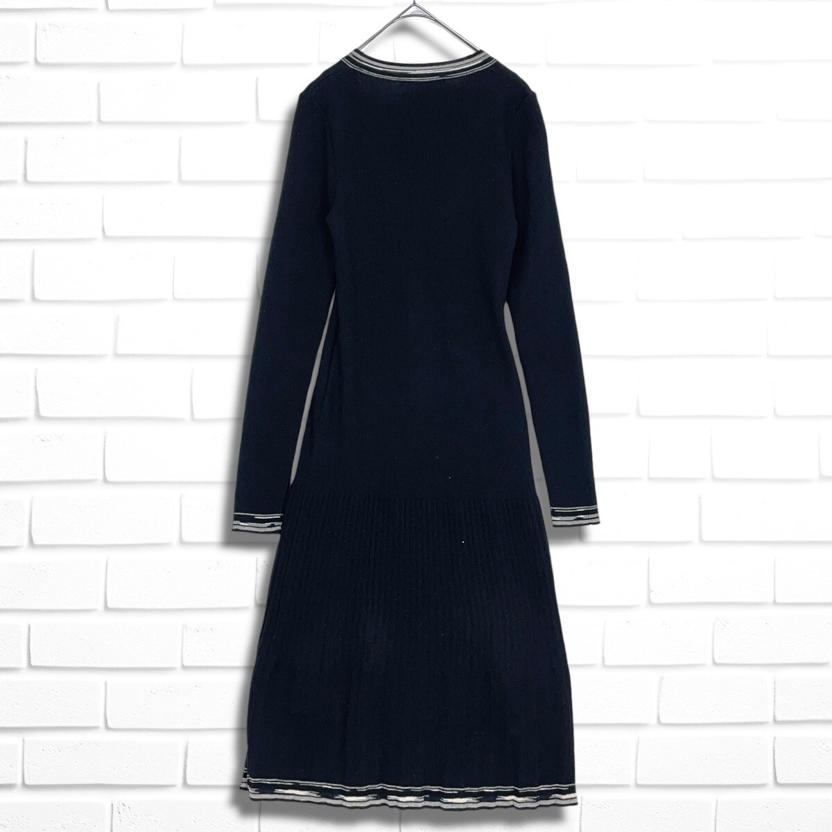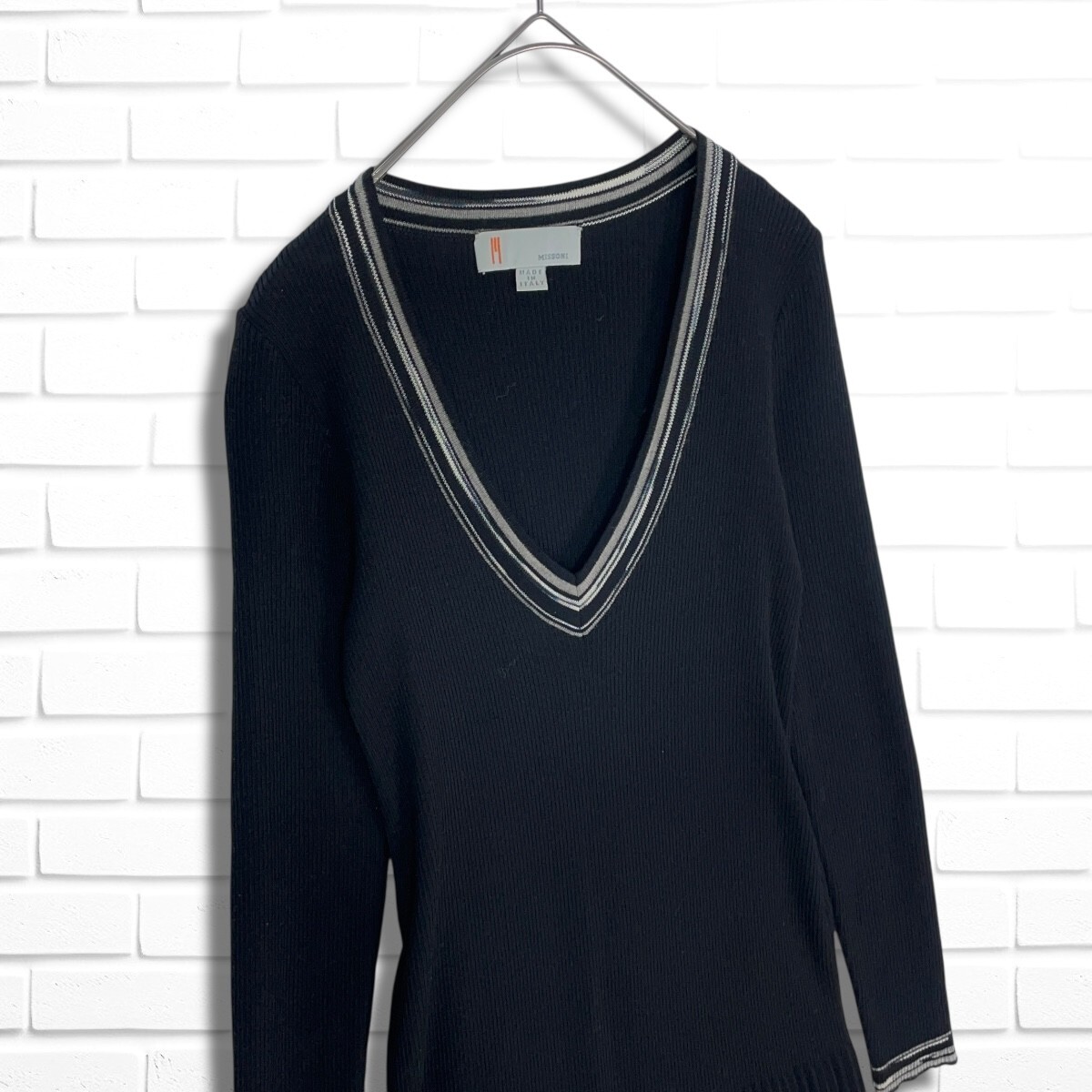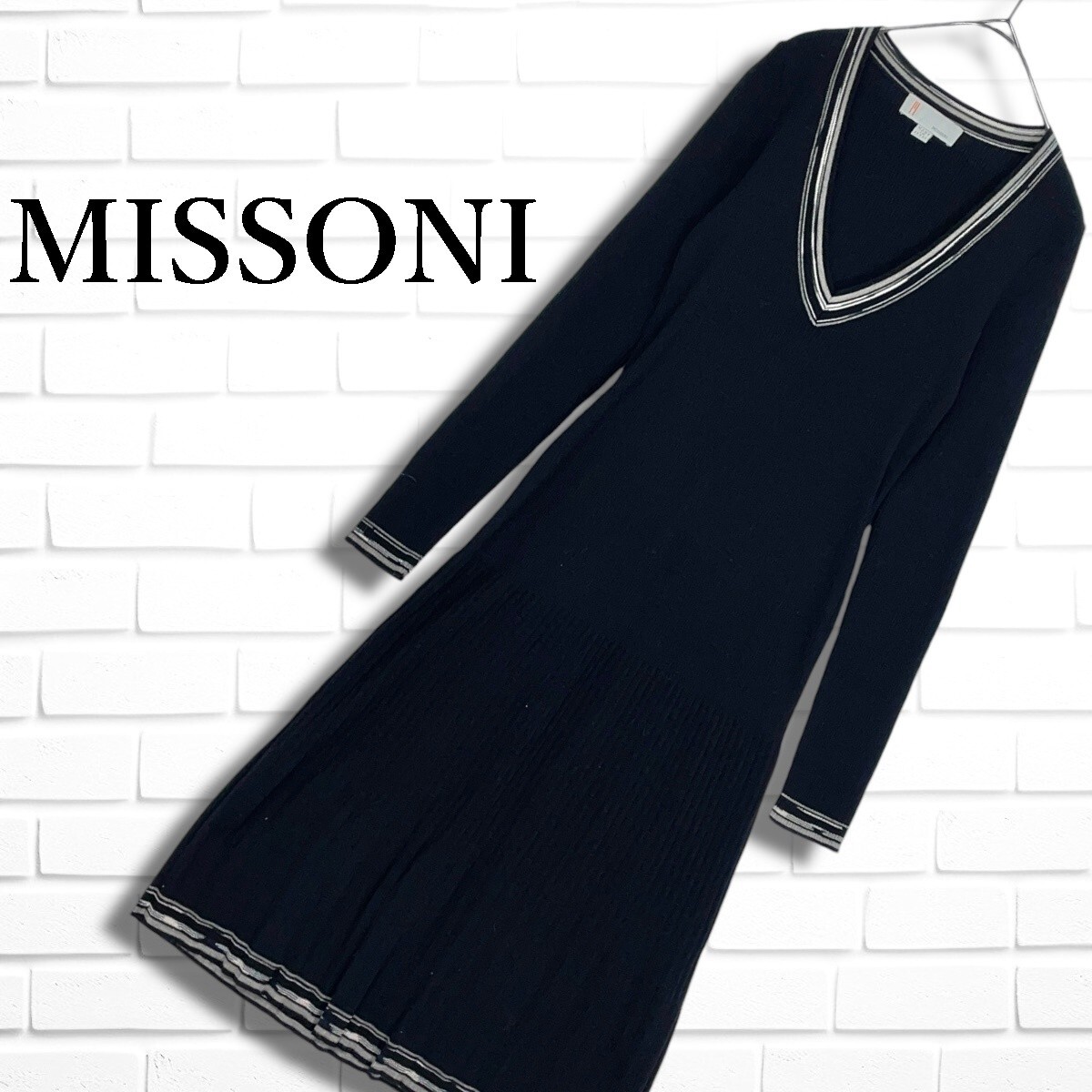 ◆美品◆ MISSONI ミッソーニ ウール リブ ニット 長袖 ロング ワンピース 黒 ブラック レディース 38 ◆イタリア製 送料無料◆ 6245K◇