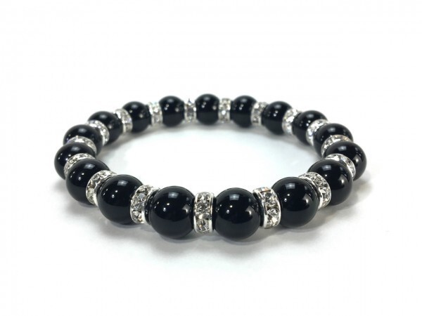 オニキス パワーストーン ブレスレット 天然石ブレス 10mm メンズ・レディース (シルバー) 開運 浄化 数珠ブレス ☆
