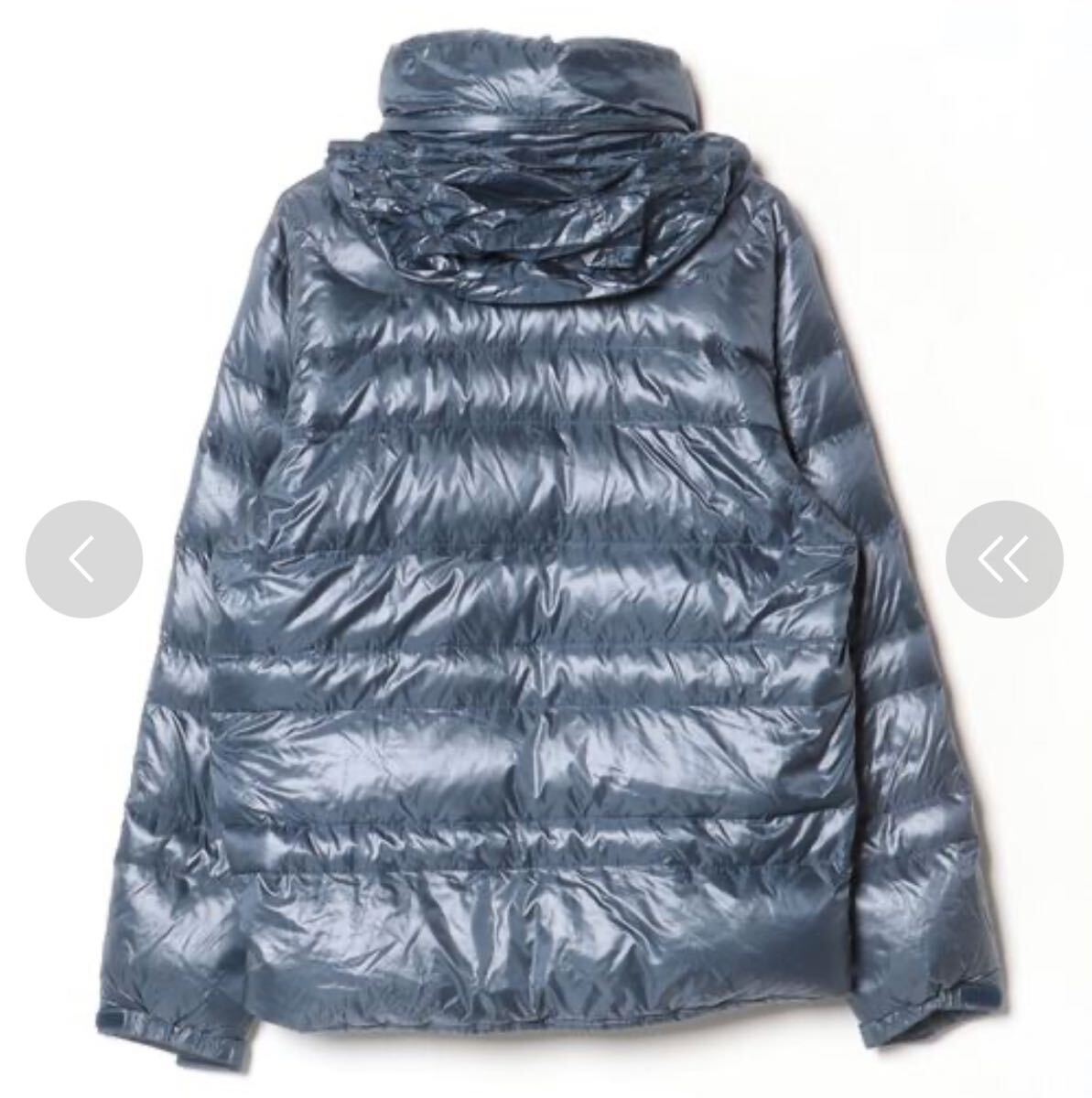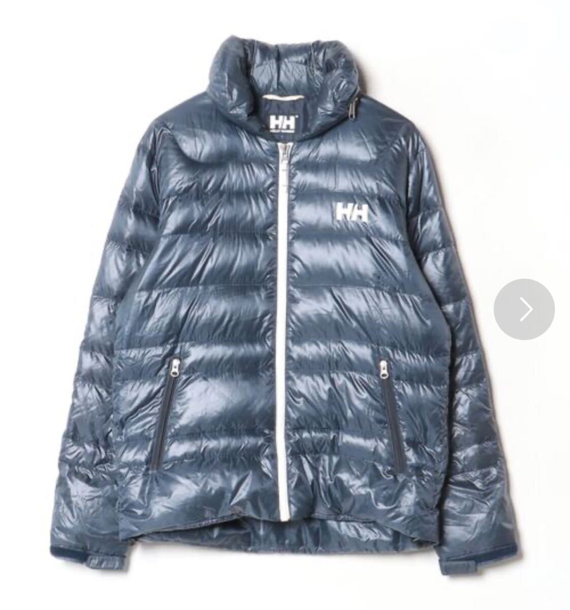 HELLY HANSENの胸元にワンポイントのダウンジャケットです。色はネイビーと明記されていましたが、シルバーに近い感じです。