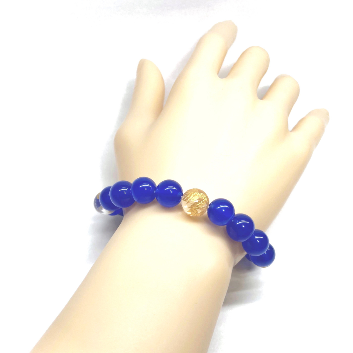 こちらは、四神獣金彫水晶と青瑪瑙を組み合わせたパワーストーンブレスレットです。四神獣は、中国の伝説で4つの方向(東西南北)を守護する神聖な神。四神獣、厄災から身を守り、多くの運気を呼び込むと言われております。石大きさは程よくインパクトのある10mm玉で内周 約17cmです。 数に限りがございますので気になる方はお早めにどうぞ。
