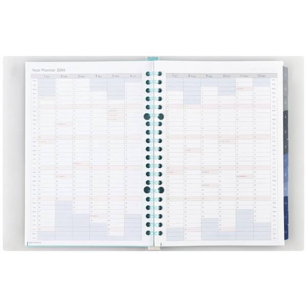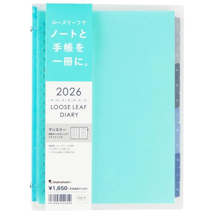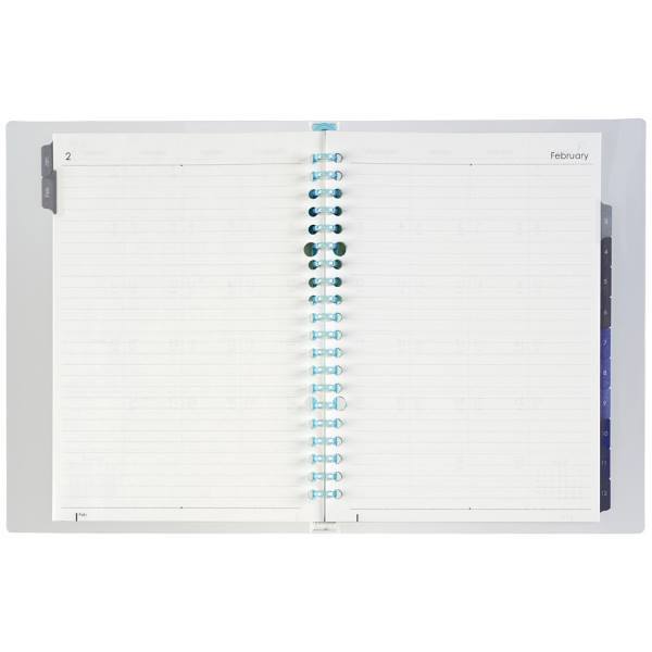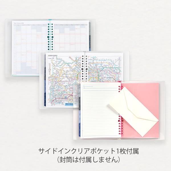 | ・持ち運びに便利なA5サイズです。 ・軽量なプラスチックバインダーは持ち運びに快適です。 ・月毎にメモを管理できるダイアリページ。 ・月間ダイアリーは、タブが3ヵ月ごとに色分けされ、見やすいです。 |