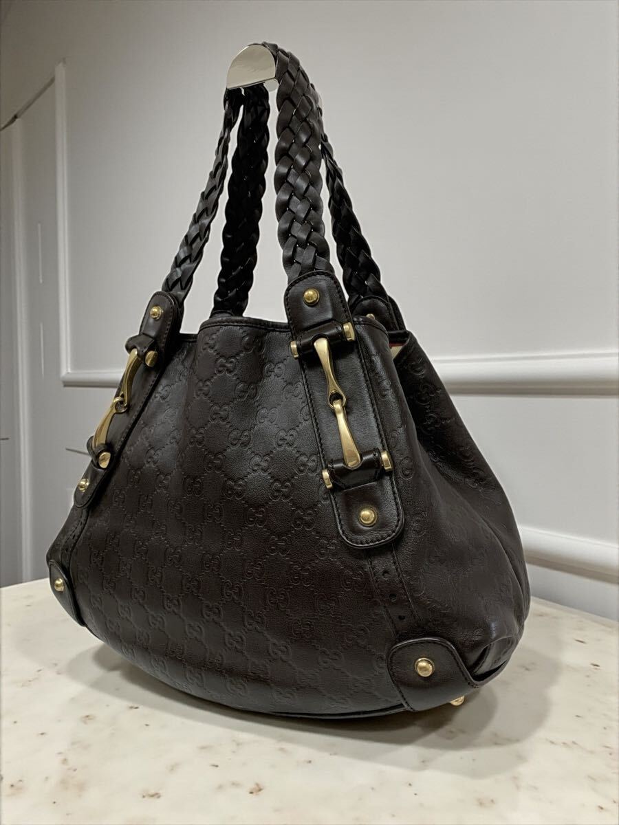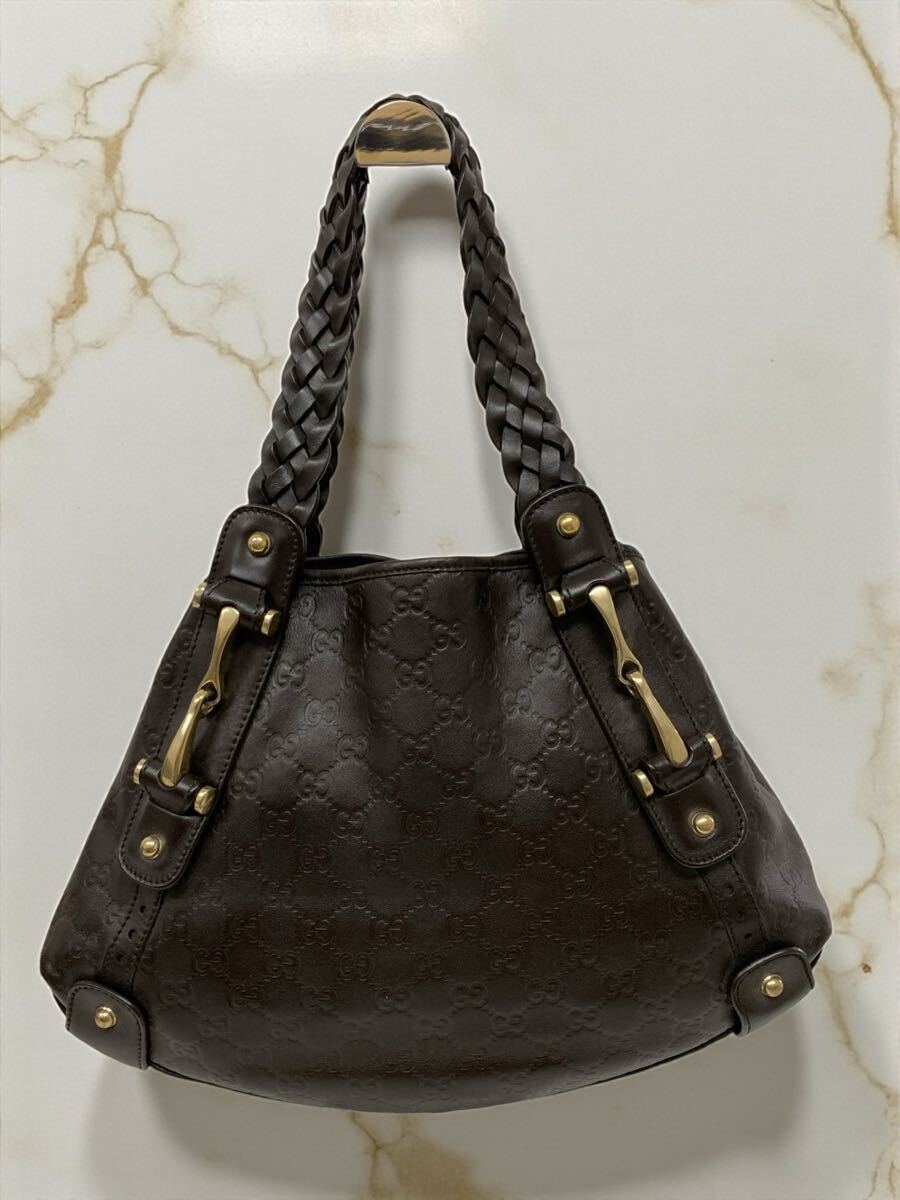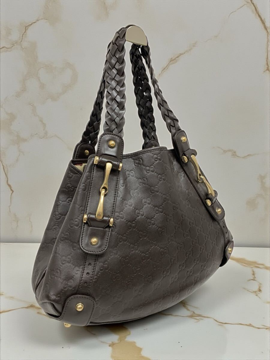 ●I1206A GUCCI グッチ グッチシマ ホースビット 金具 レザー 本革 セミ ショルダーバッグ ハンドバッグ ブラウン 自宅保管品 現状品