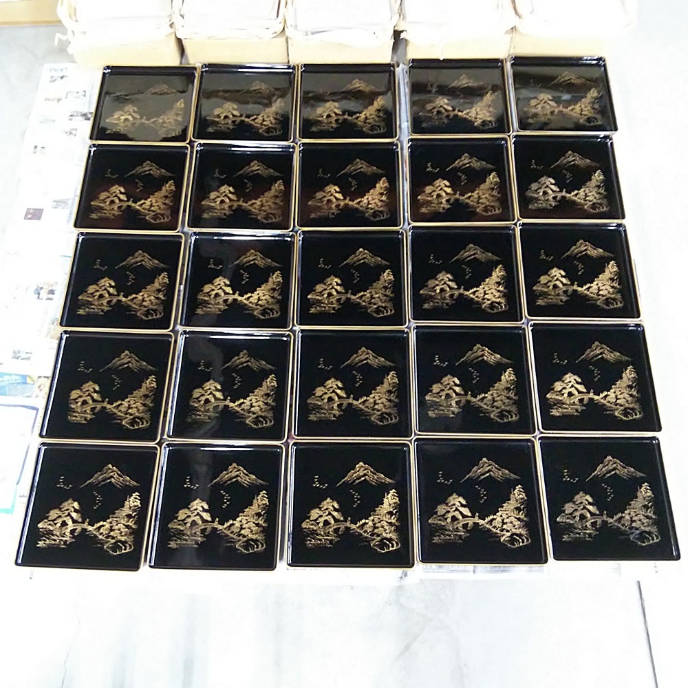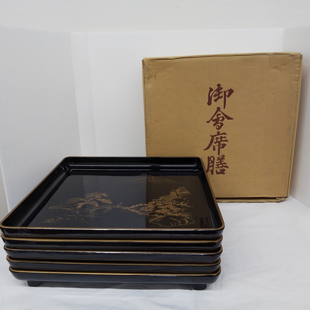 25-BP-50【御会席膳5客入×5箱(合計25客)まとめ】山本清之助製 漆工研究所 漆器 御膳 懐石 漆工芸 外箱付 ※100サイズ×5個口で発送予定