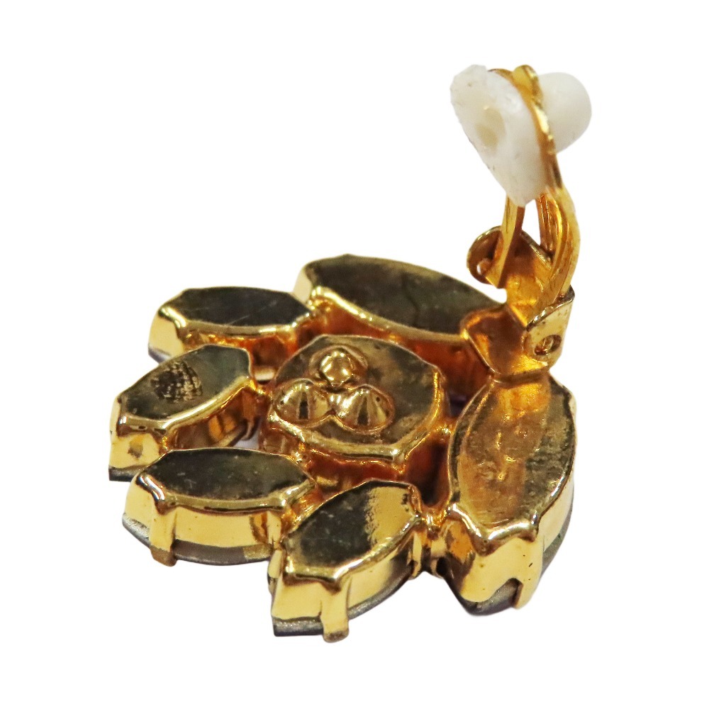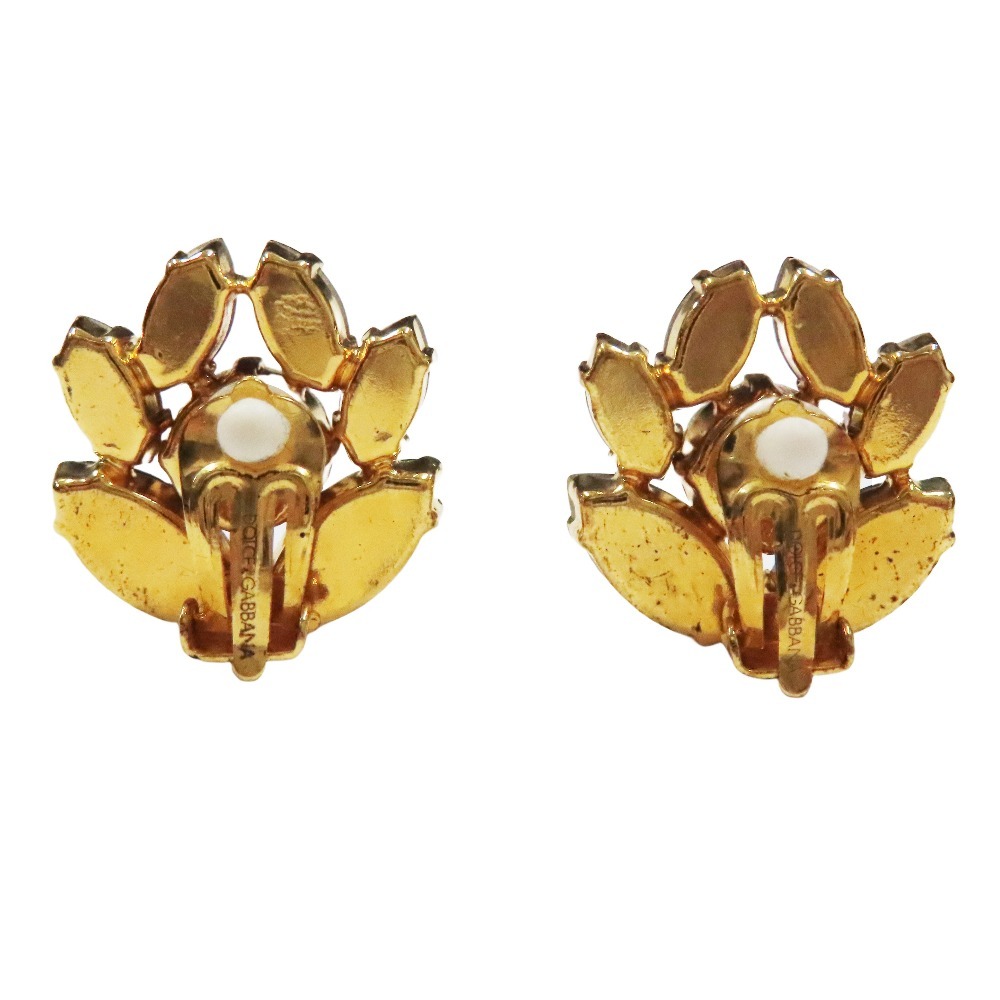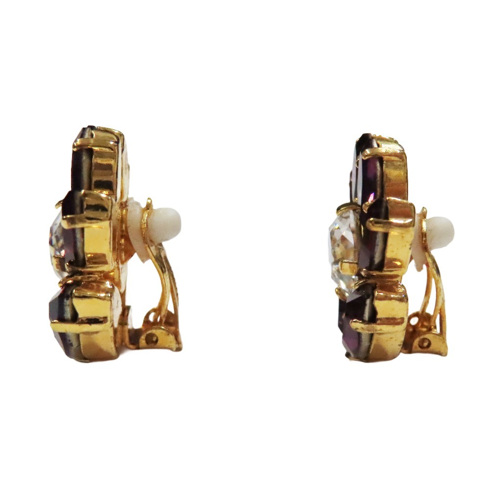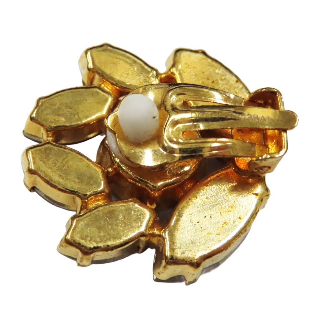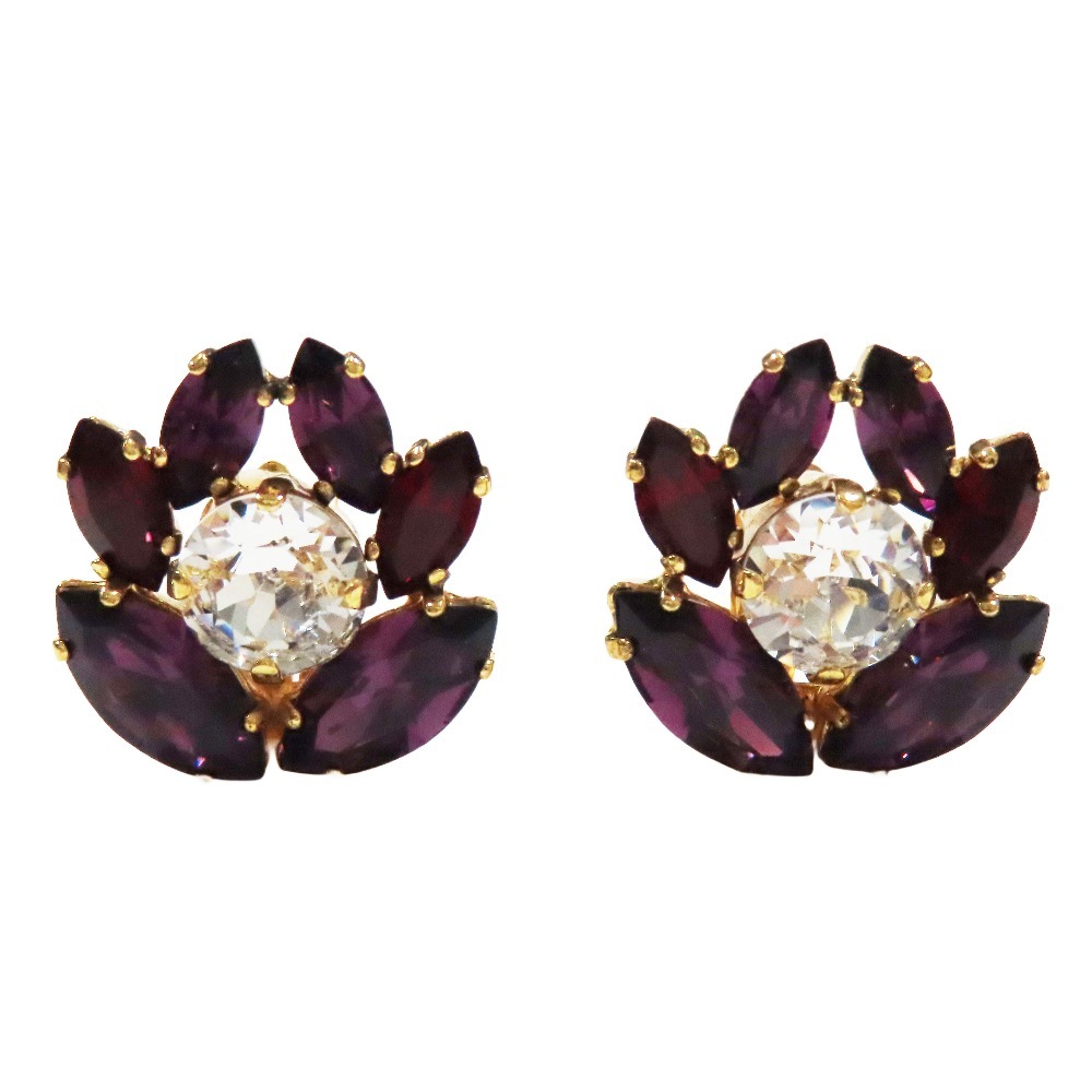良品 DOLCE&GABBANA ドルチェアンドガッバーナ フラワー イヤリング ビジュー クリスタル アクセサリー パープル ゴールド