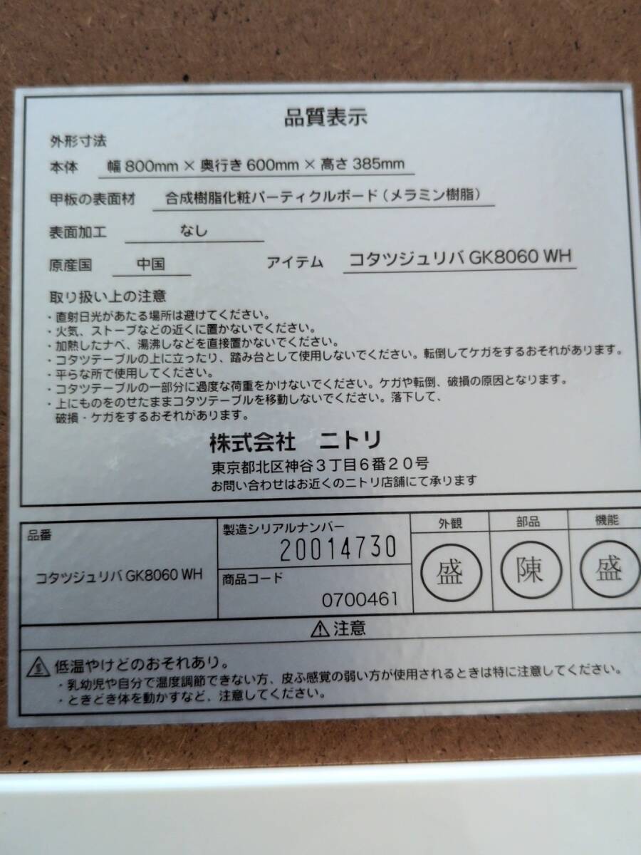 USED 美品 ニトリ コタツ 約80×60 本体のみ
